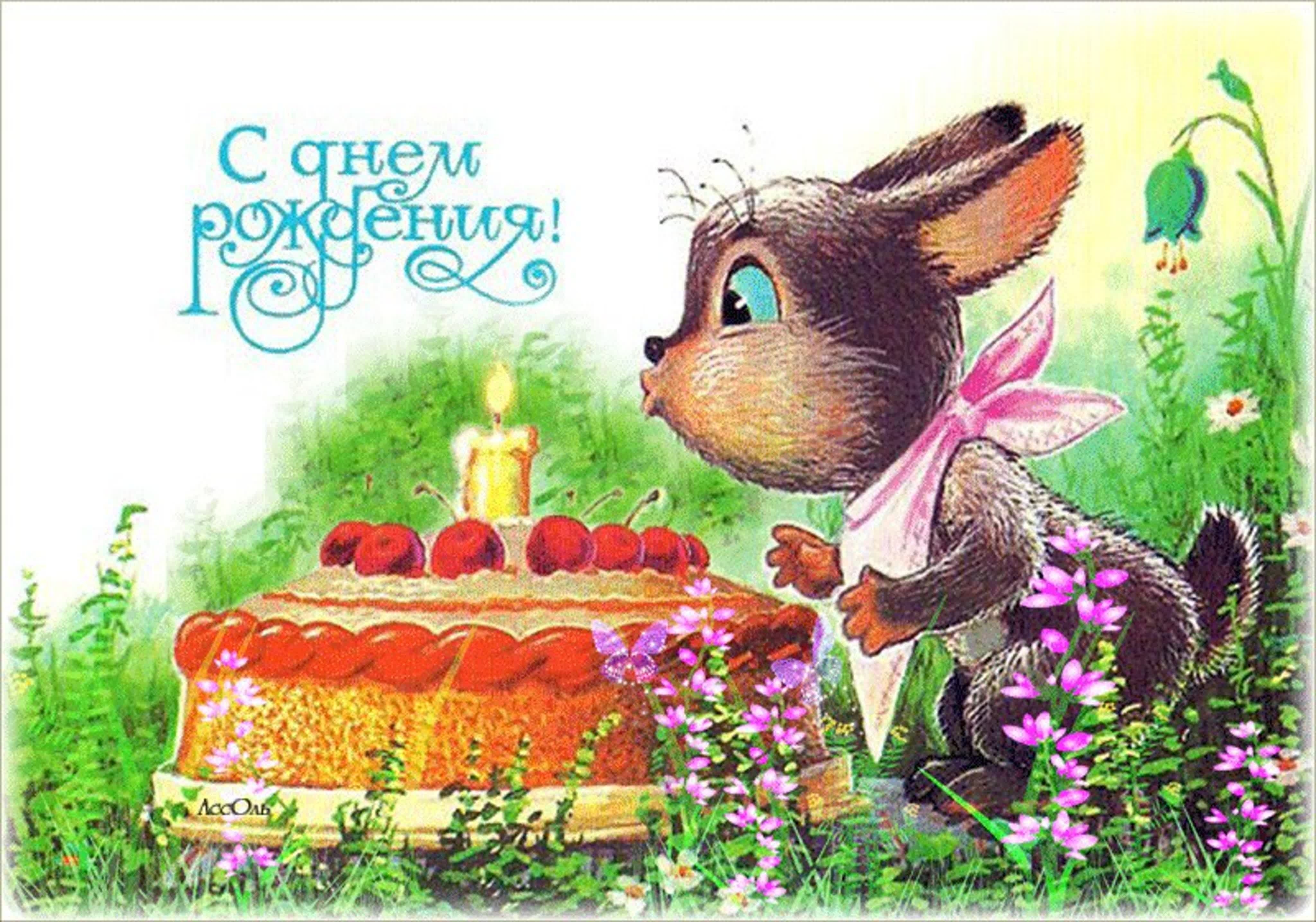 Открытка с днем рождения заяц