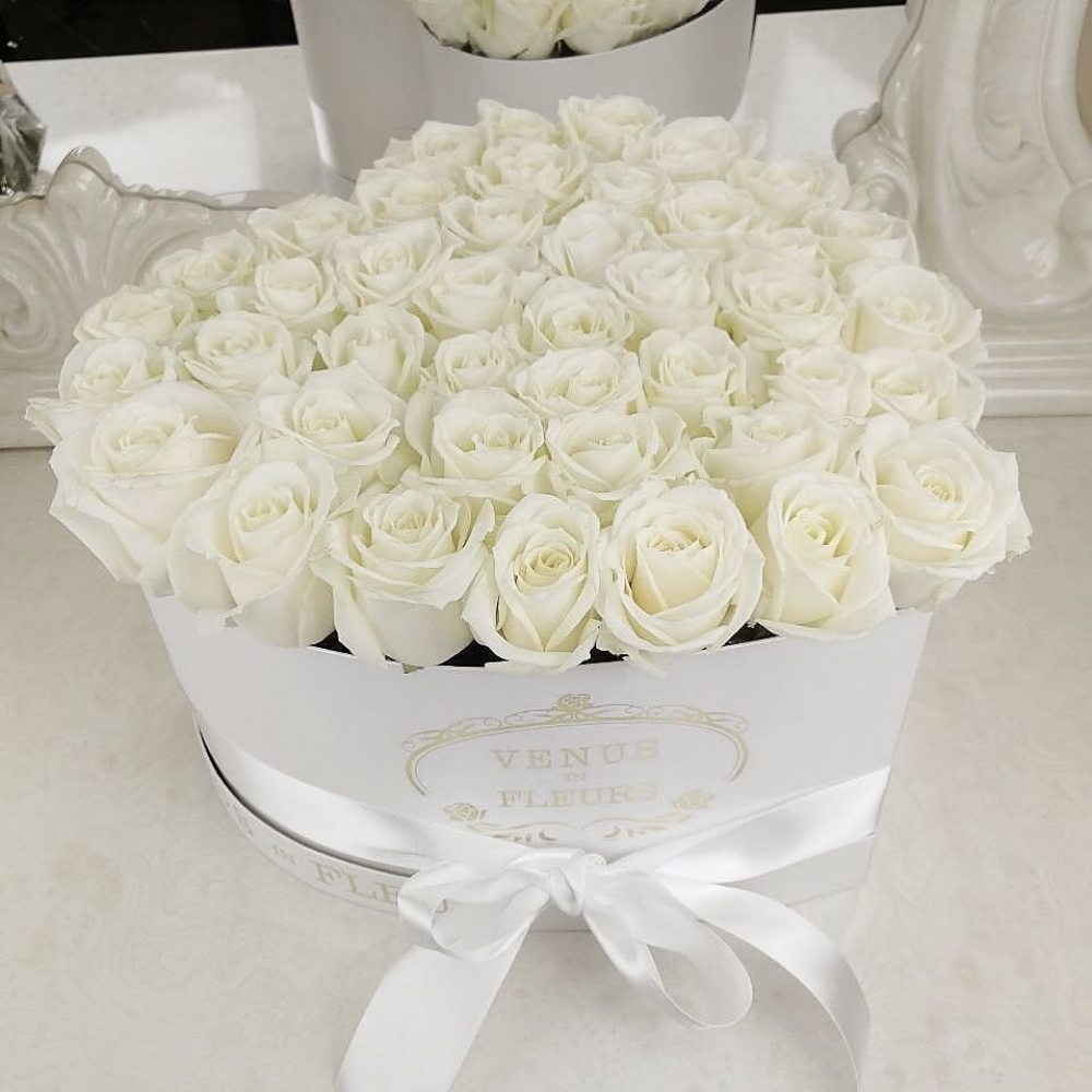 Шикарные белые розы в коробке