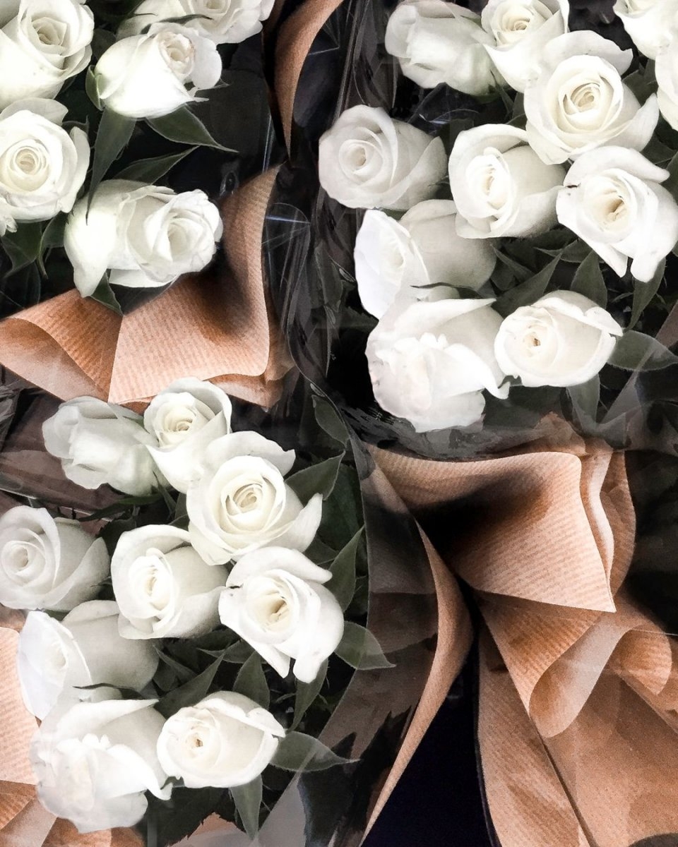Букет белых роз стильно