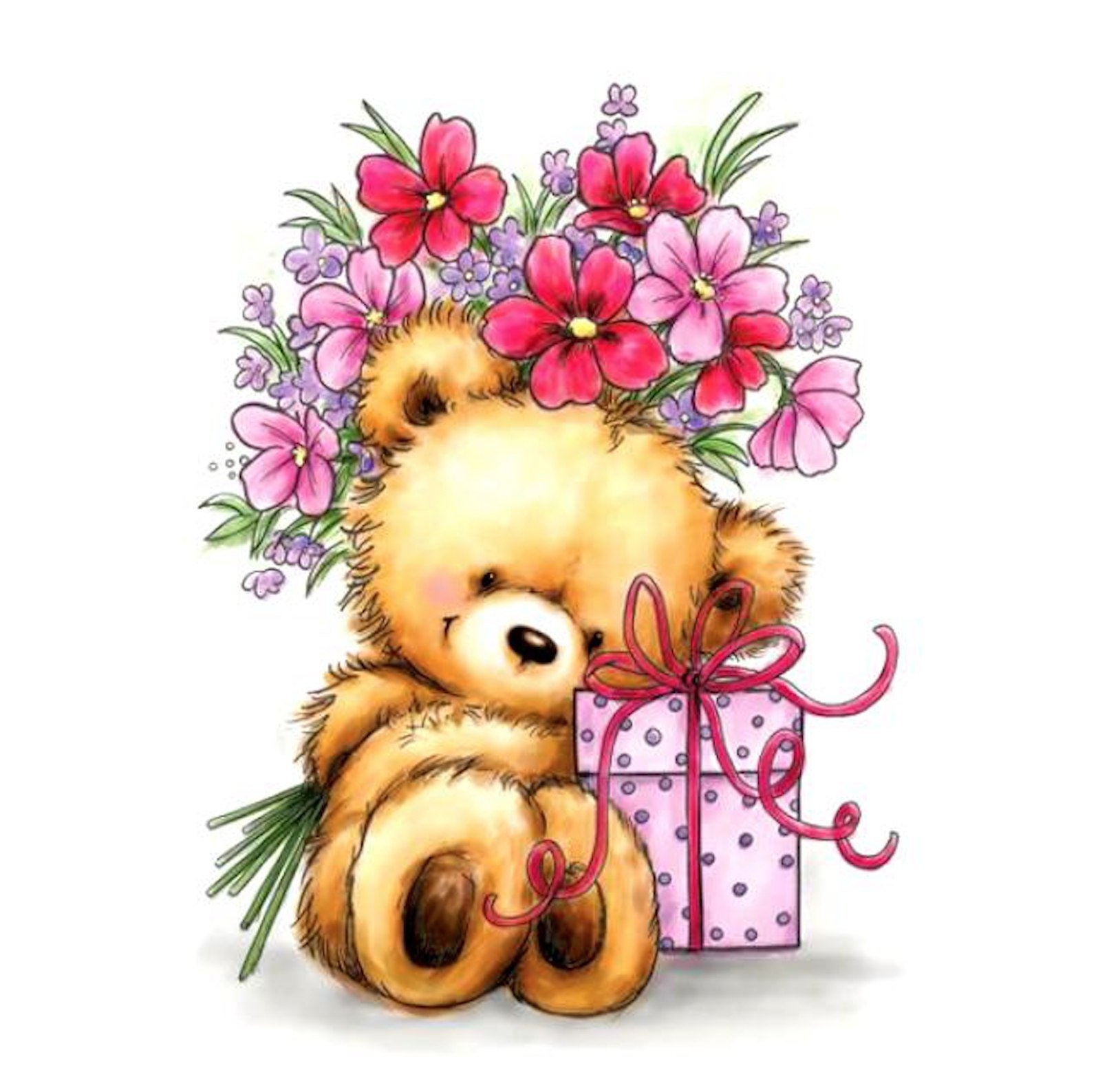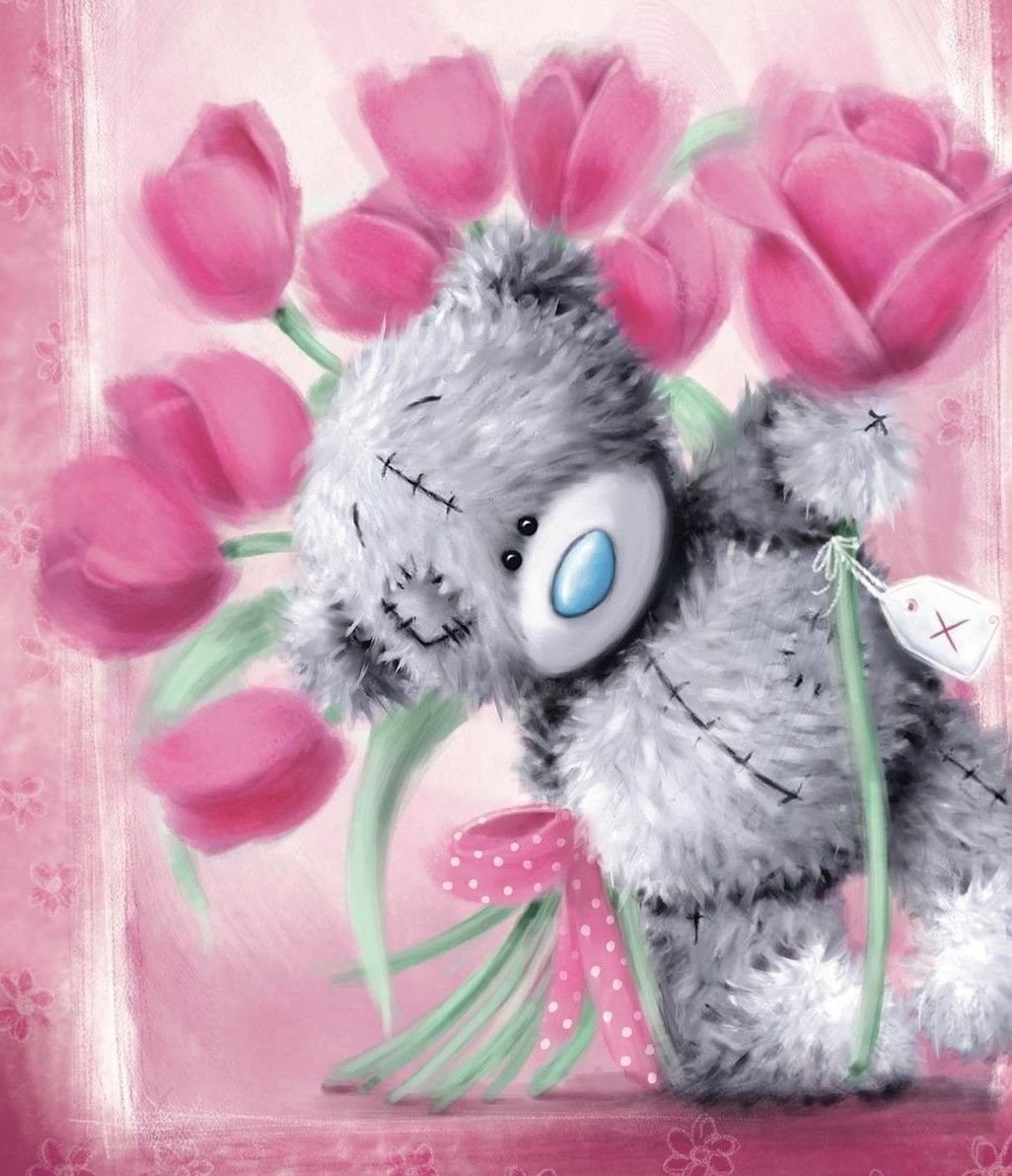 Милый мишка с цветами