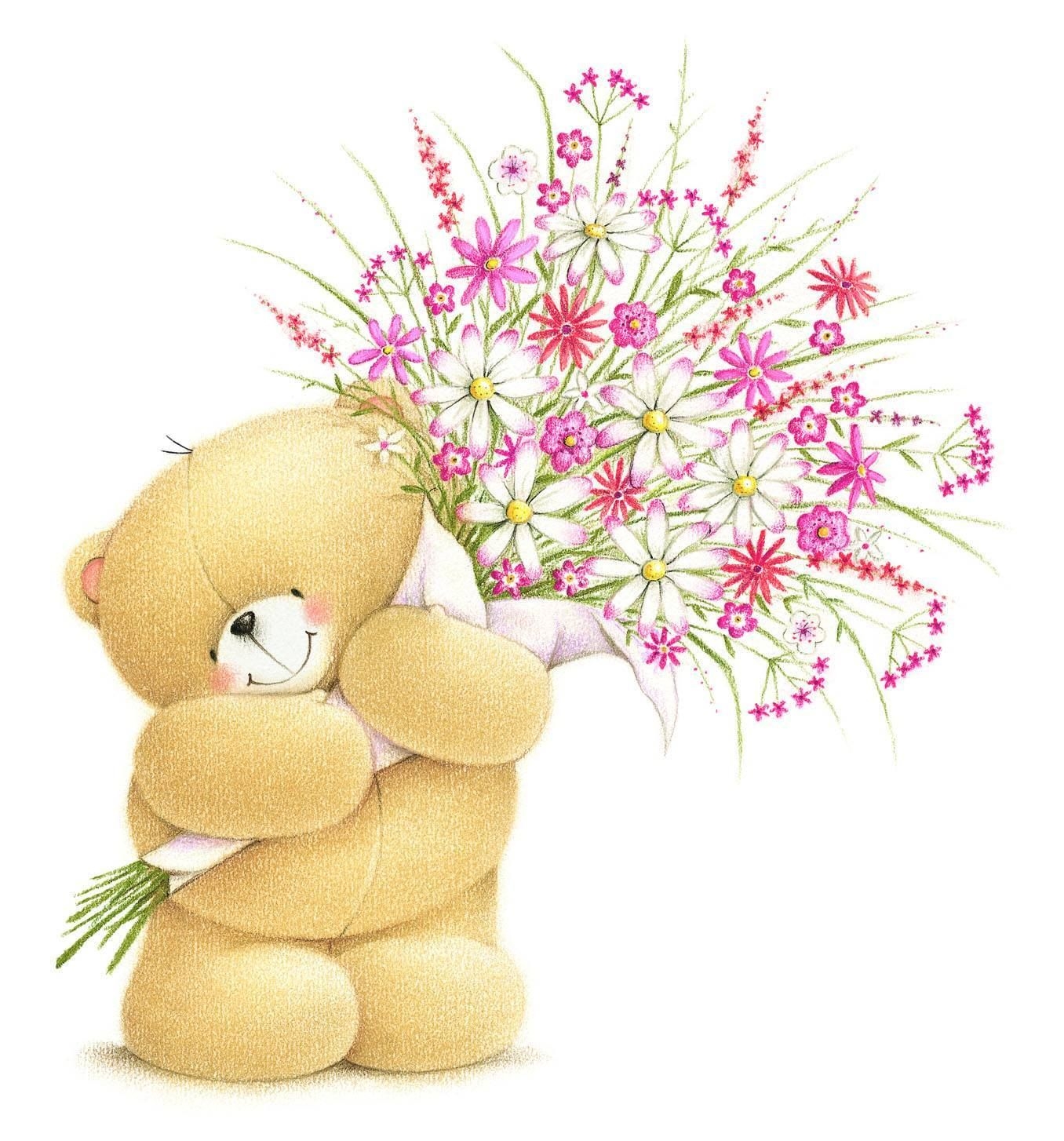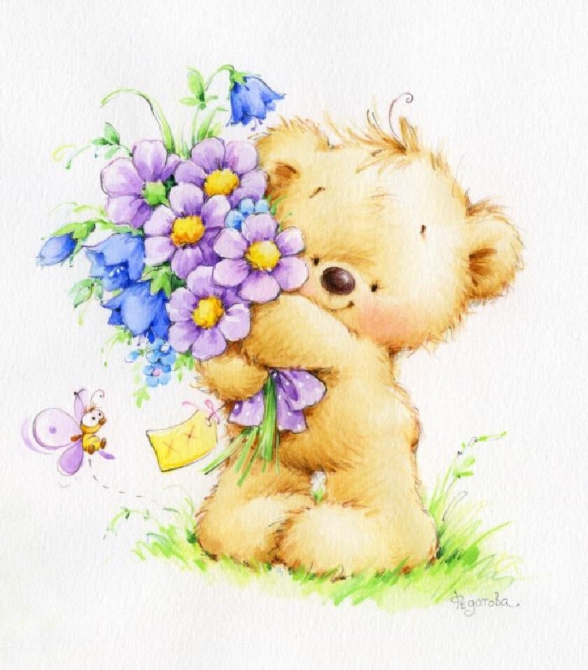 Мишка с цветами рисунок