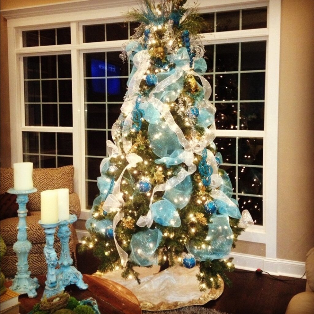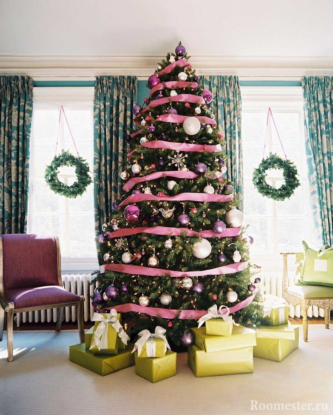 Украшение елки лентами
