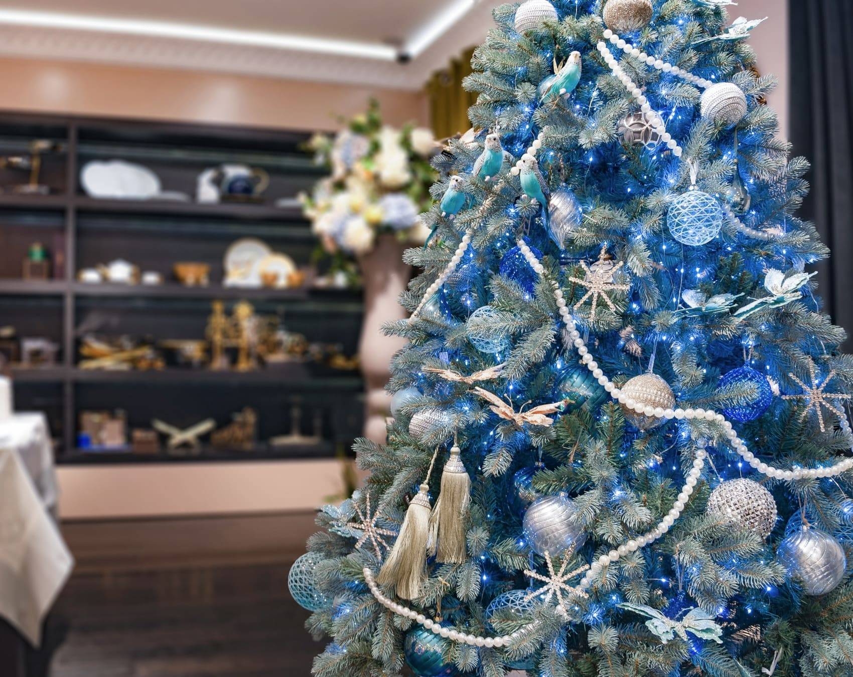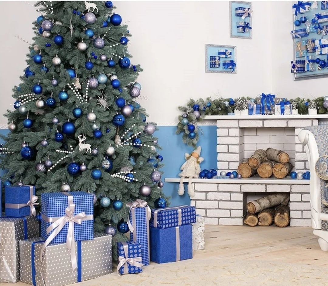 Елка с синими и серебристыми шарами