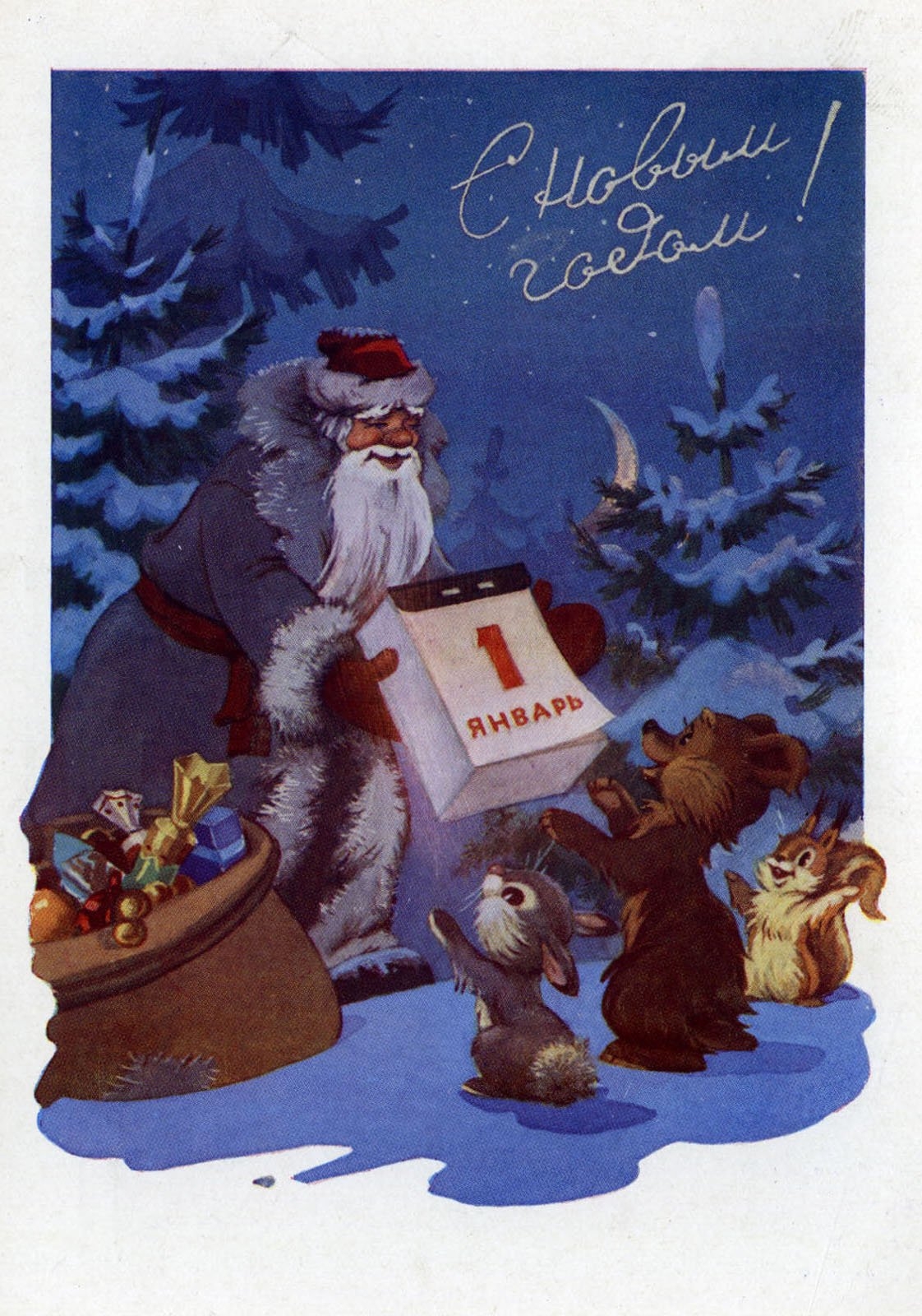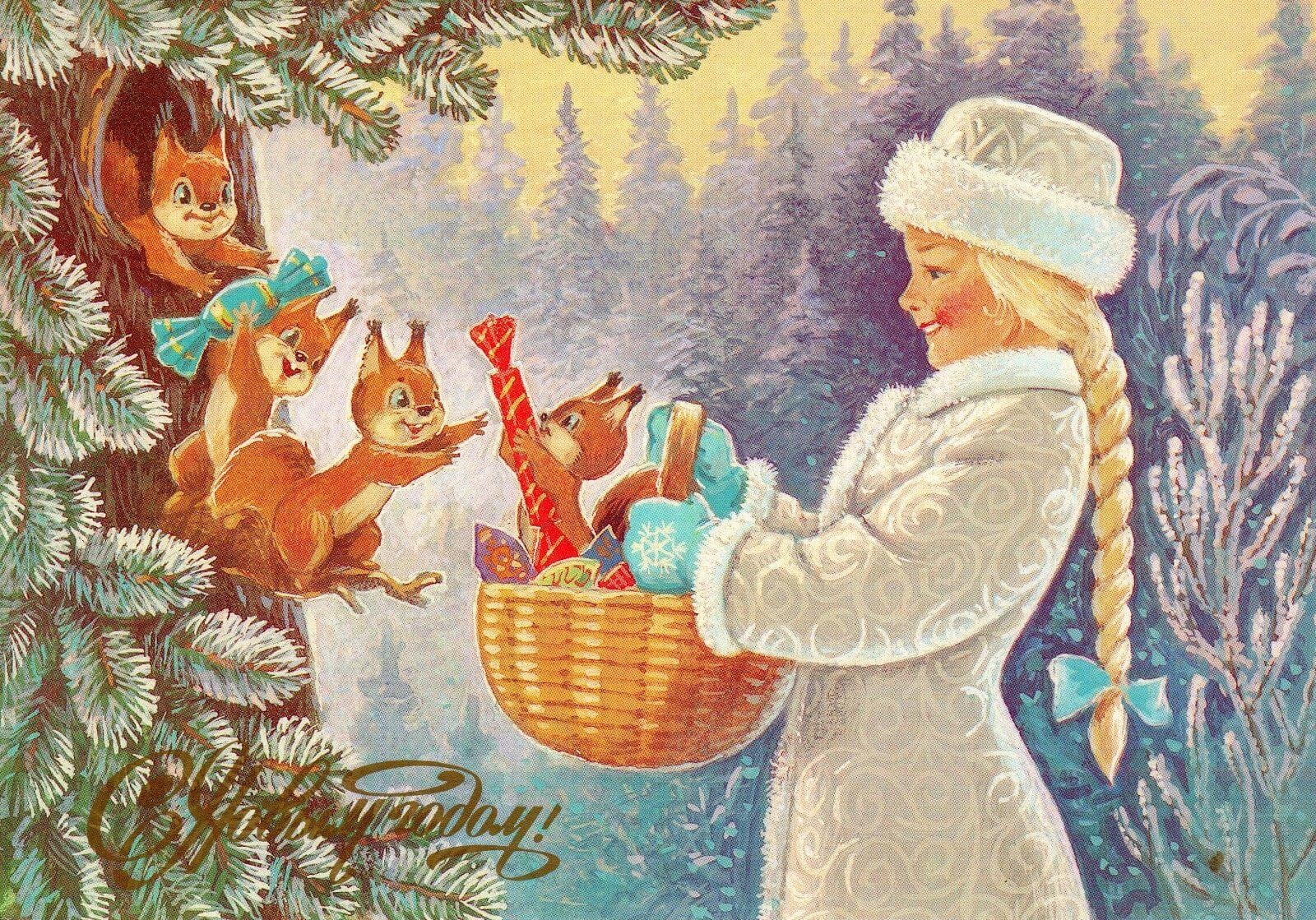 Новогодние открытки СССР художник Зарубин