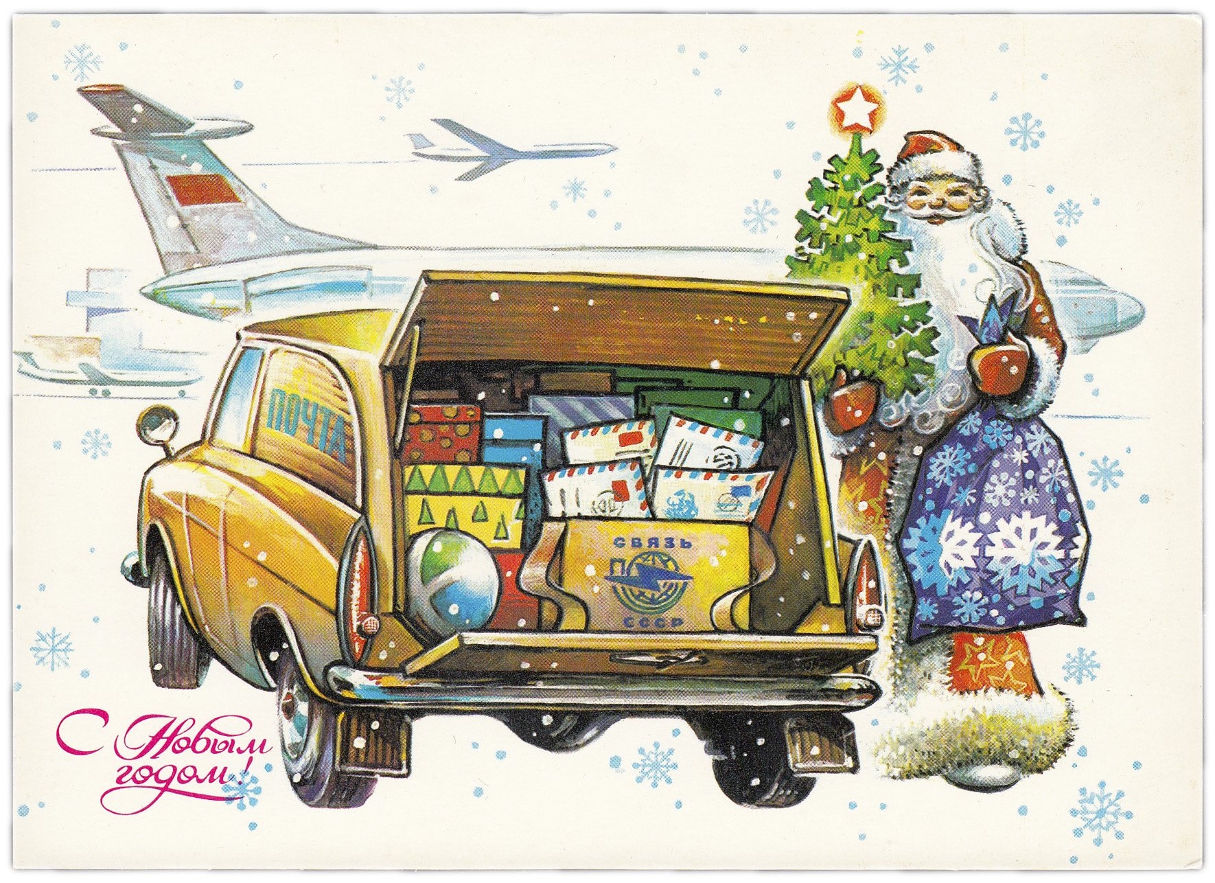 Новогодняя открытка с самолетом