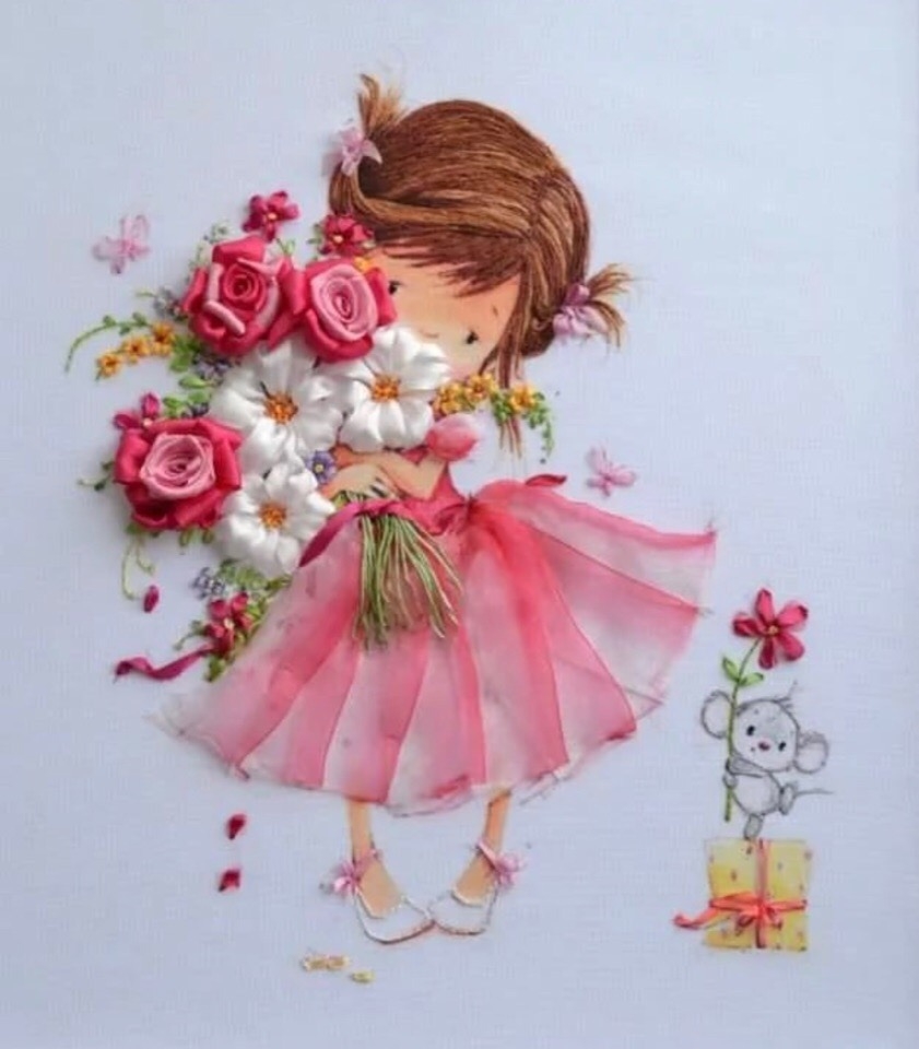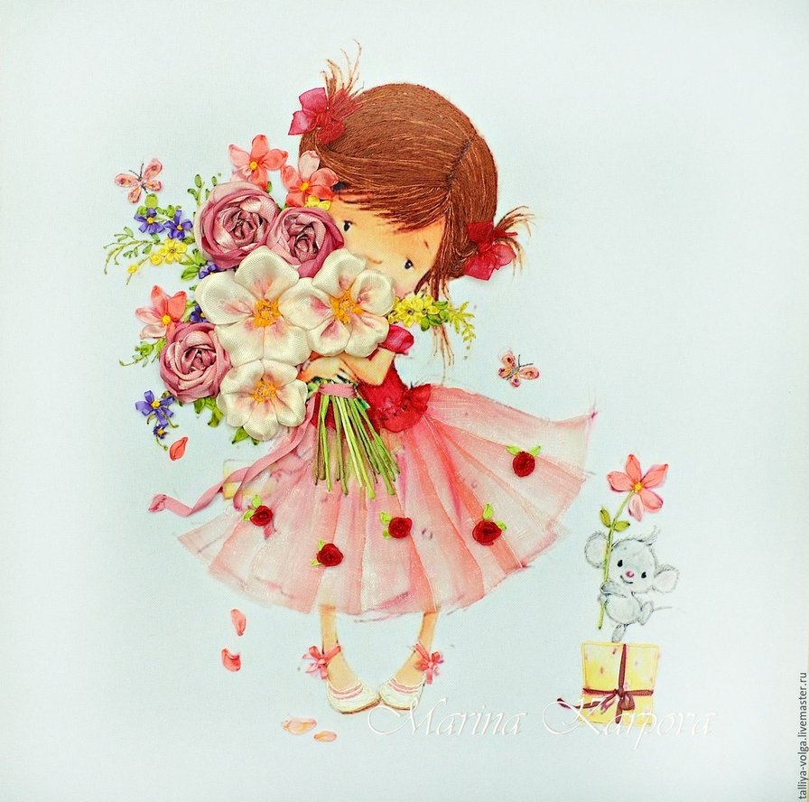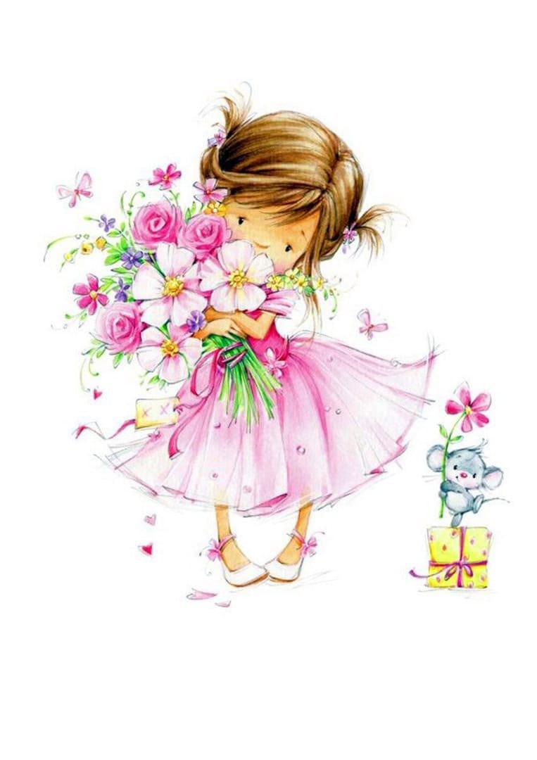 Девочка с цветами рисунок