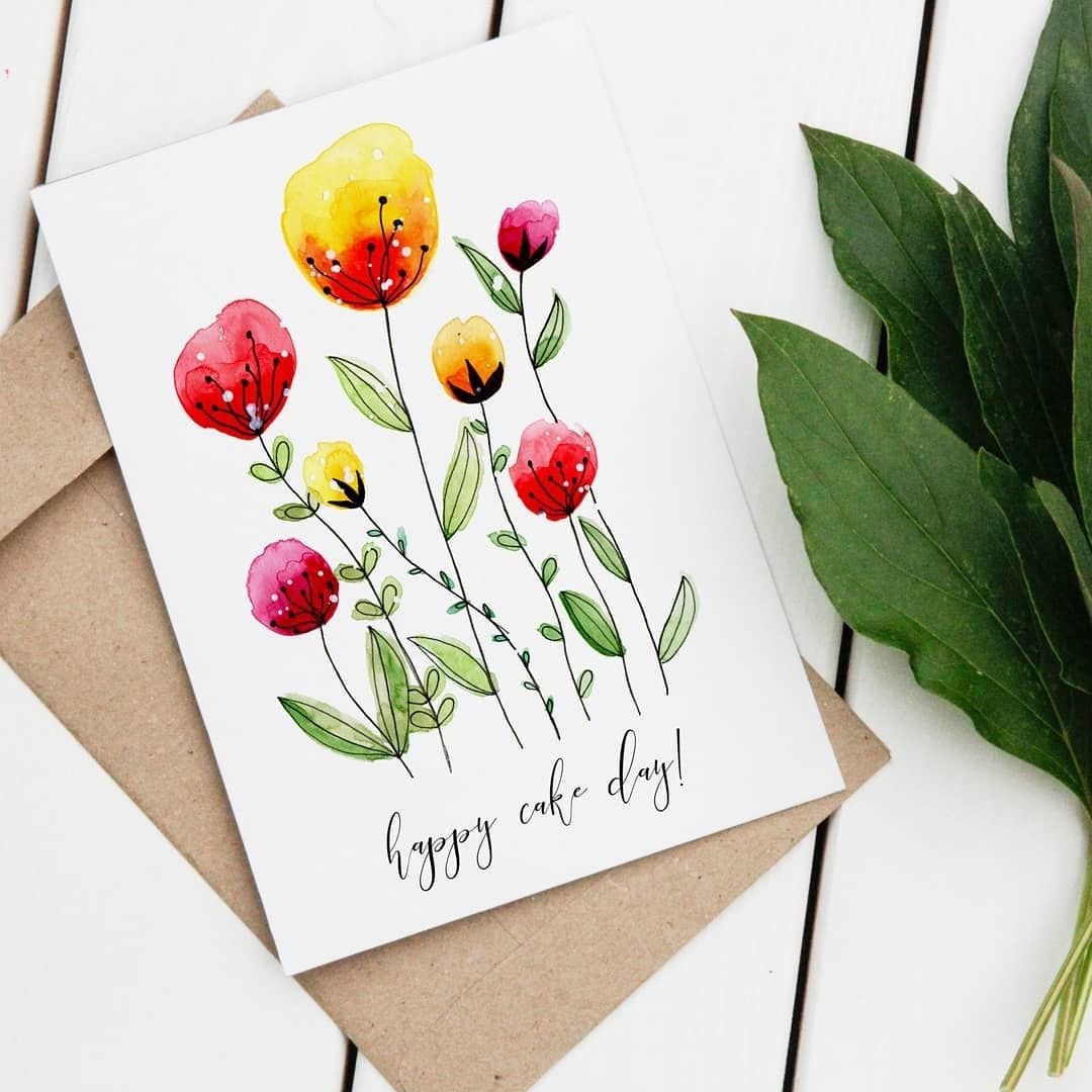 Открытка с днем рождения акварель
