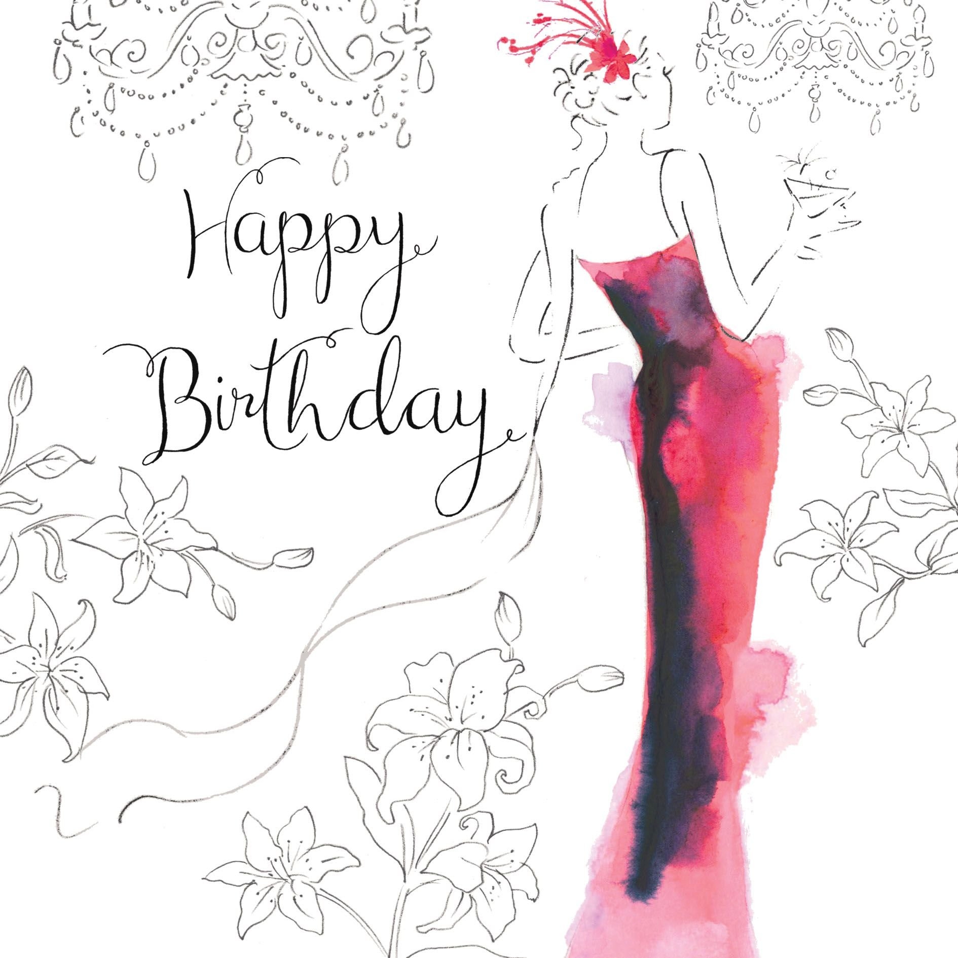 Открытка с днём рождения женщине стильная дизайнерская