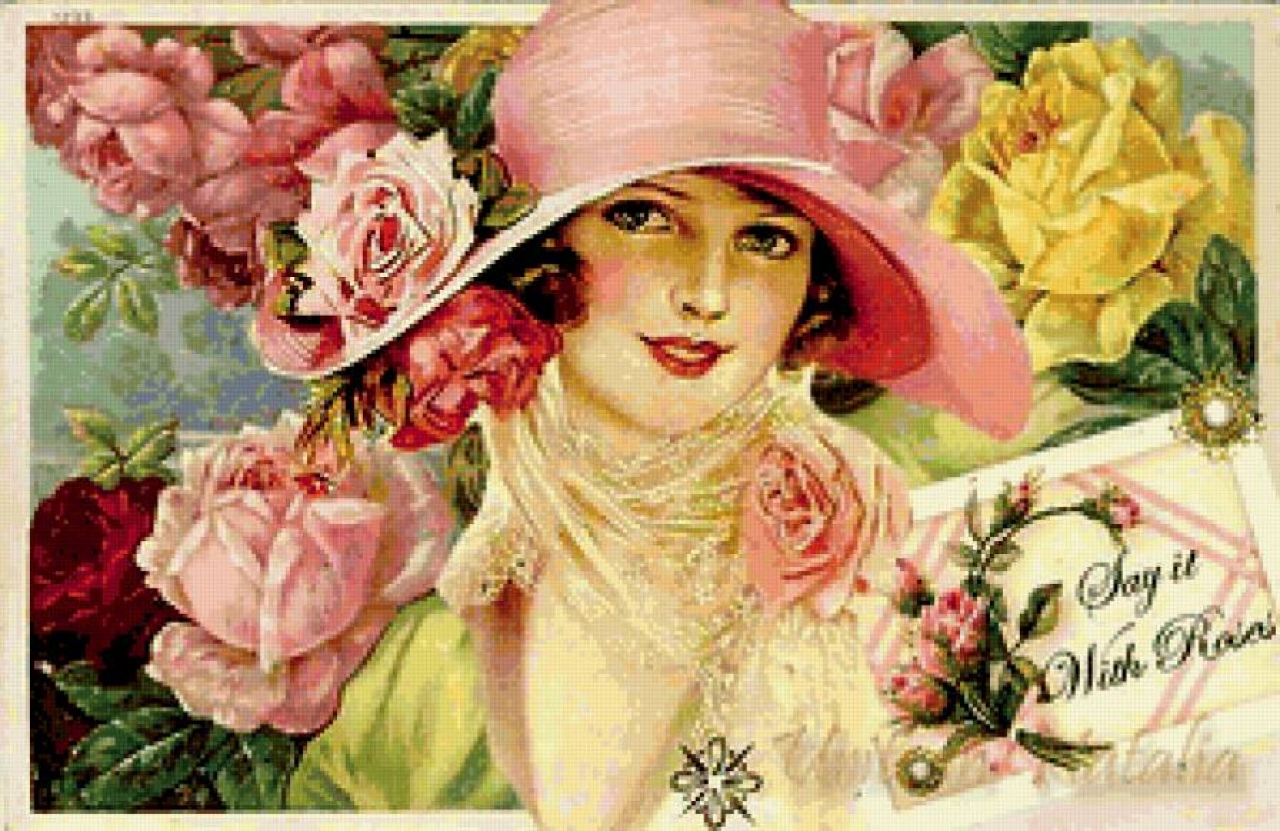 Винтажная открытка женщины