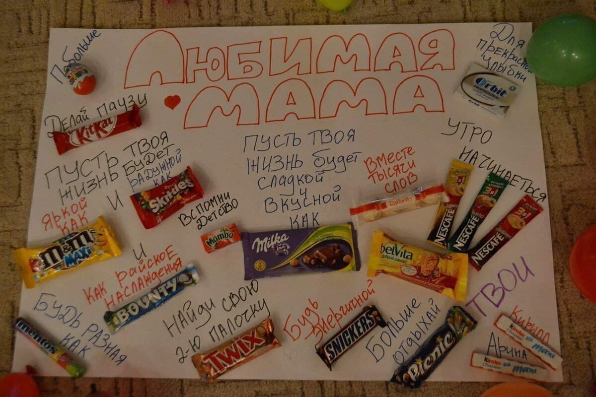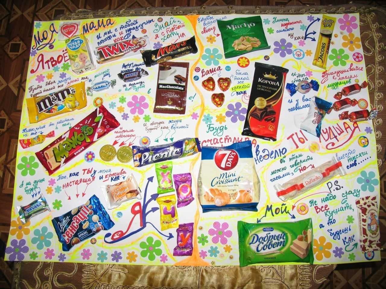 Плакат со сладостями на день рождения маме