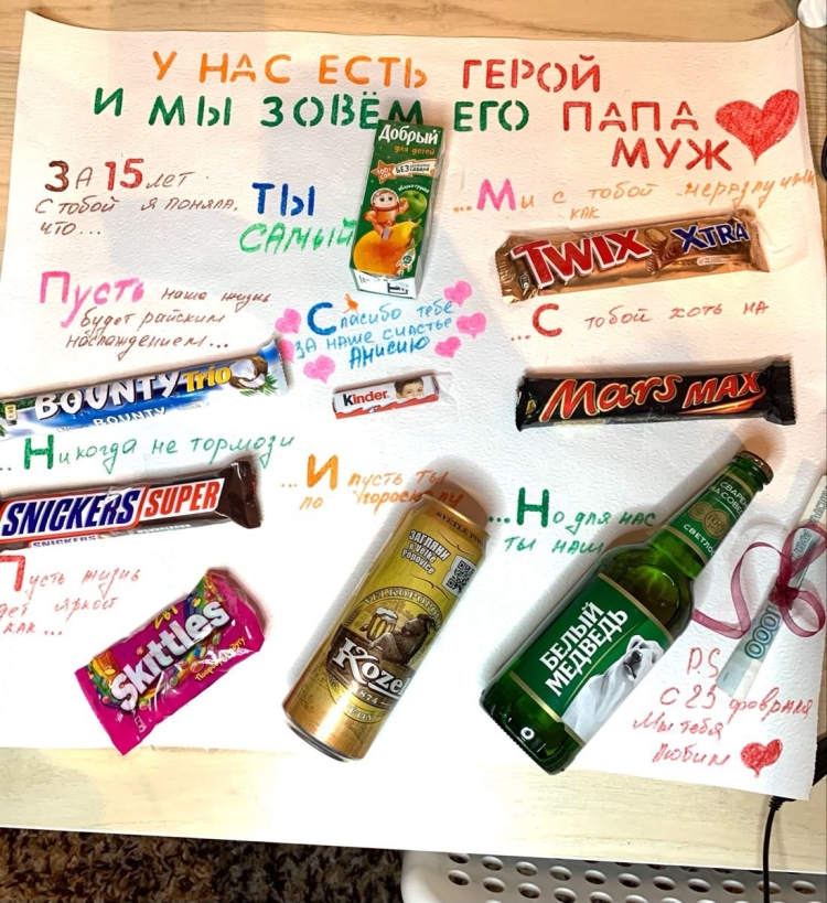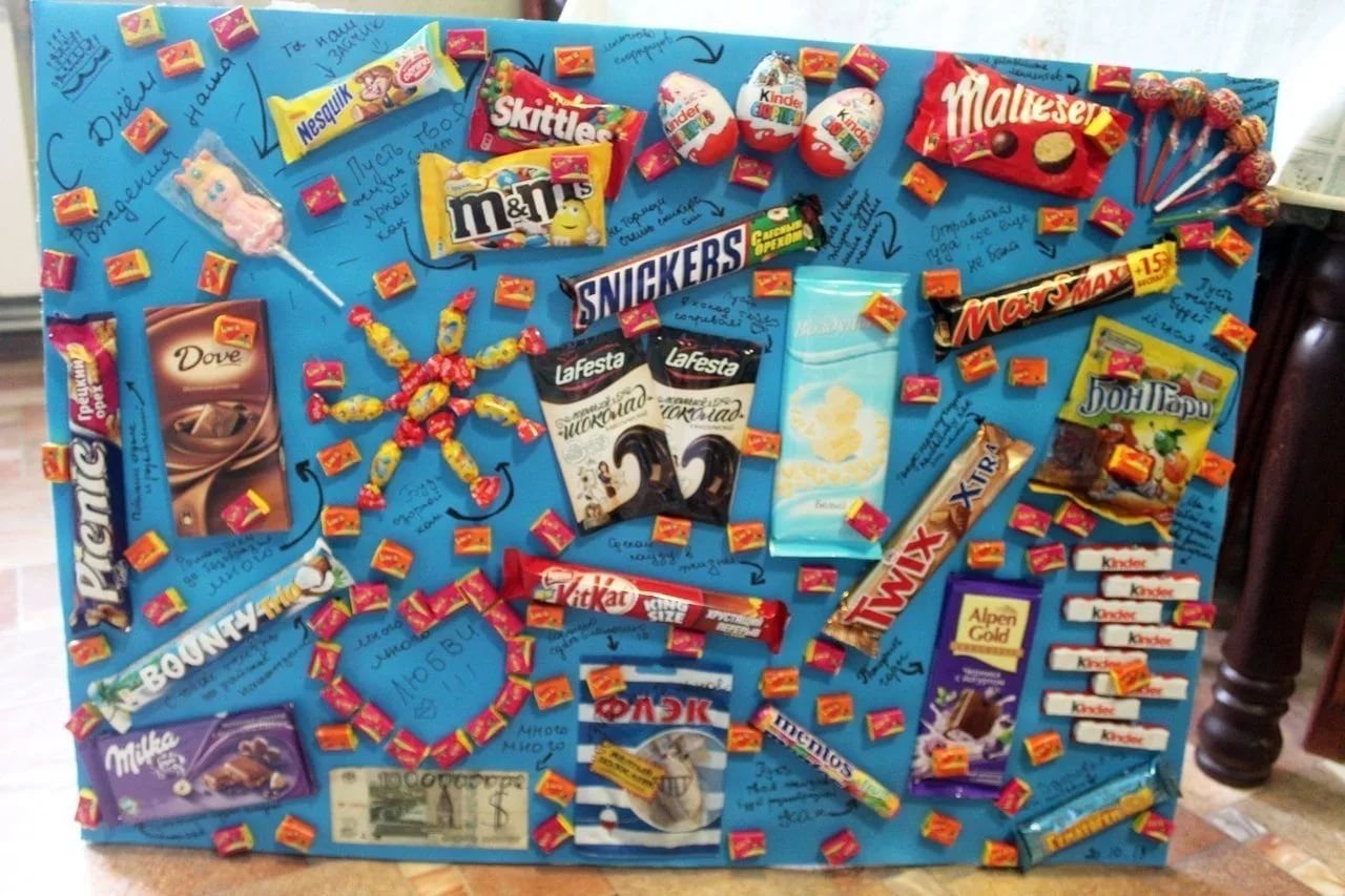 Плакат со сладостями на день рождения мужу