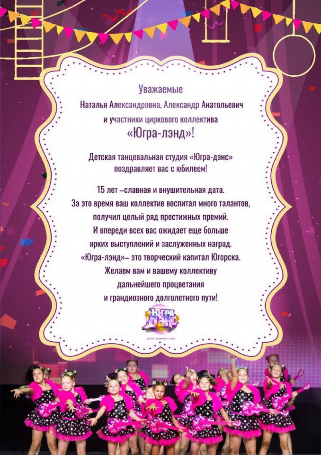 Открытка с юбилеем танцевального коллектива