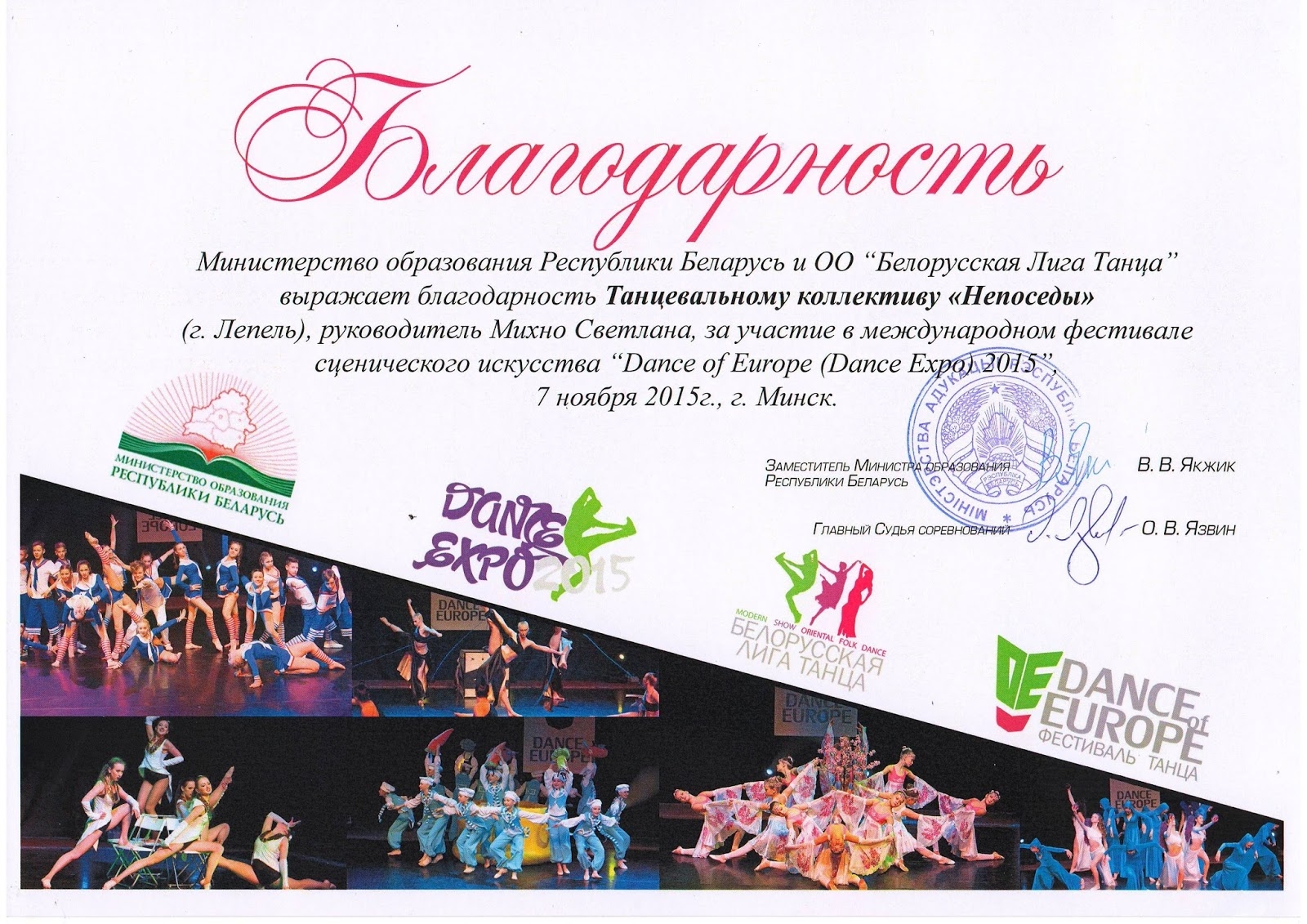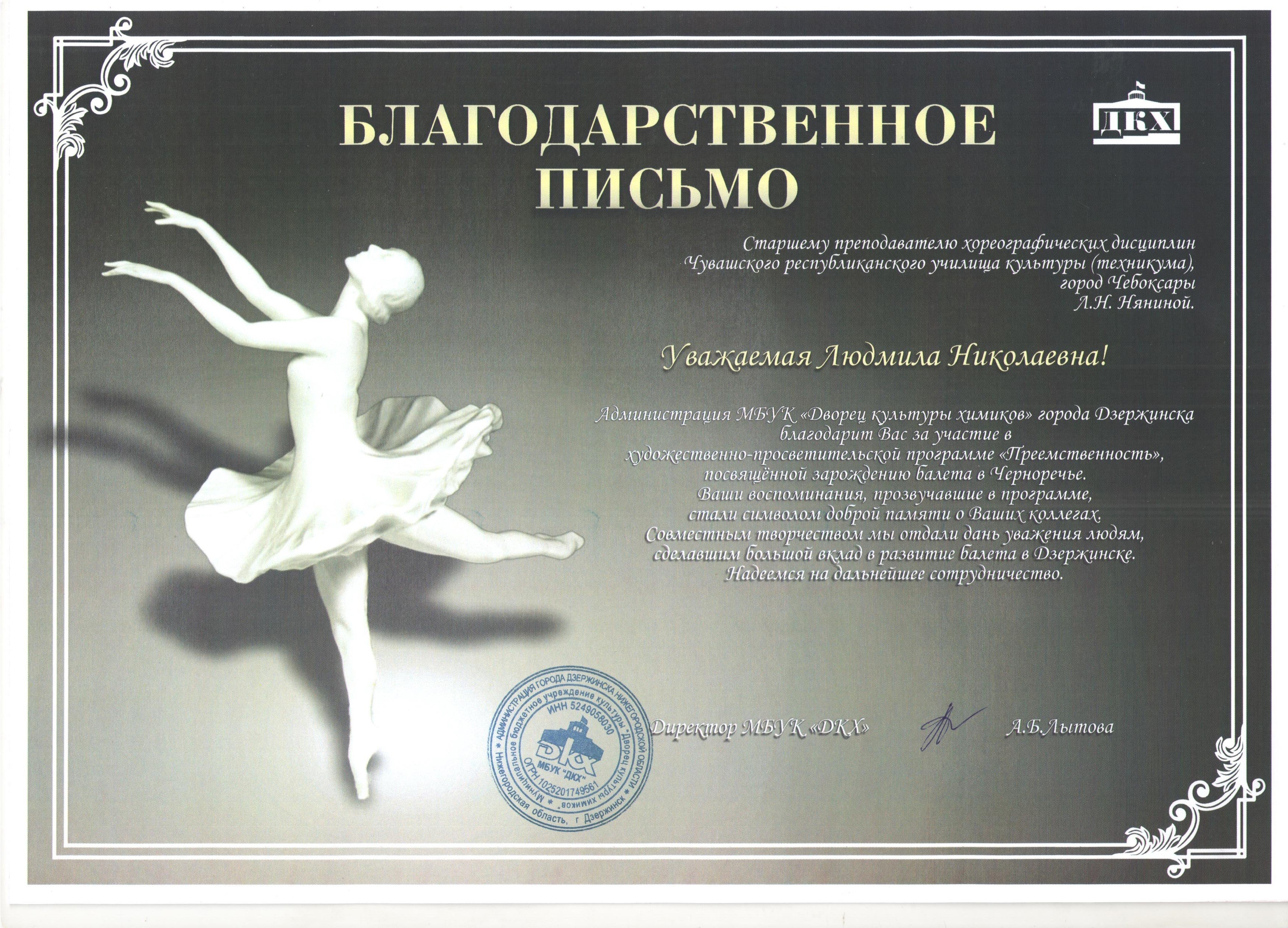 Благодарственное письмо по хореографии