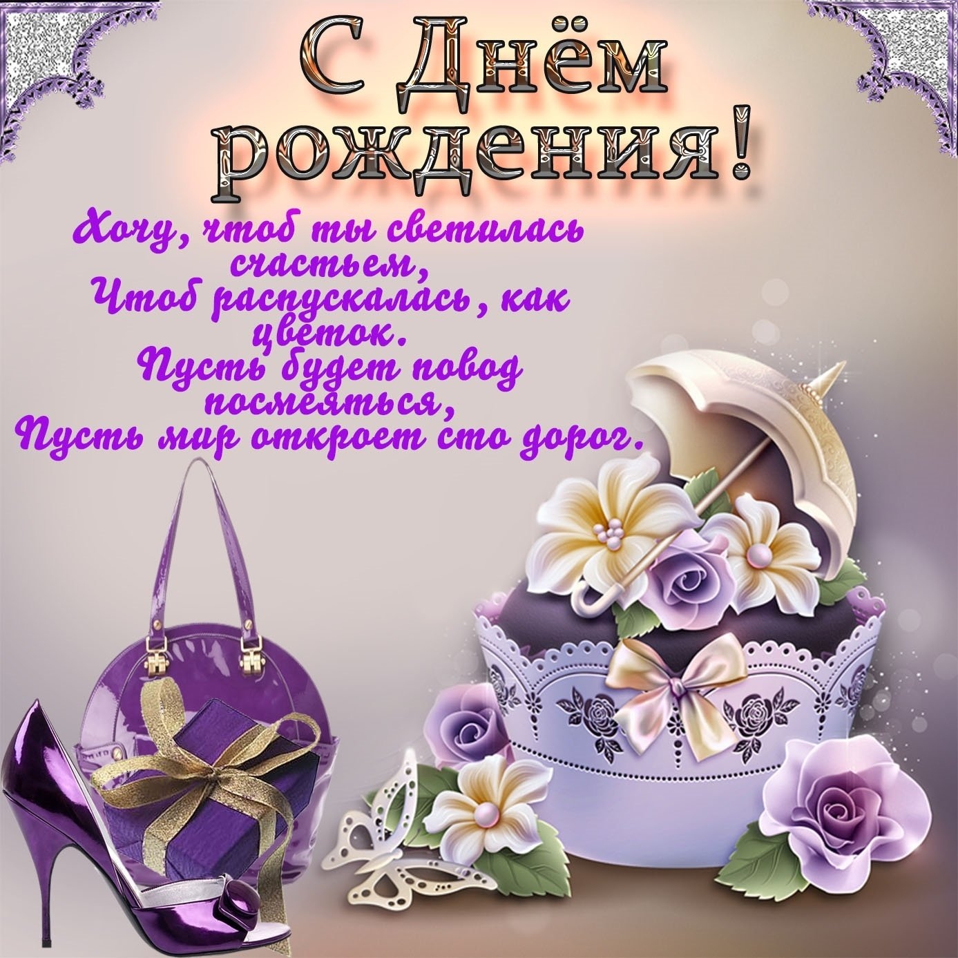 Открытка с др девушке стильное