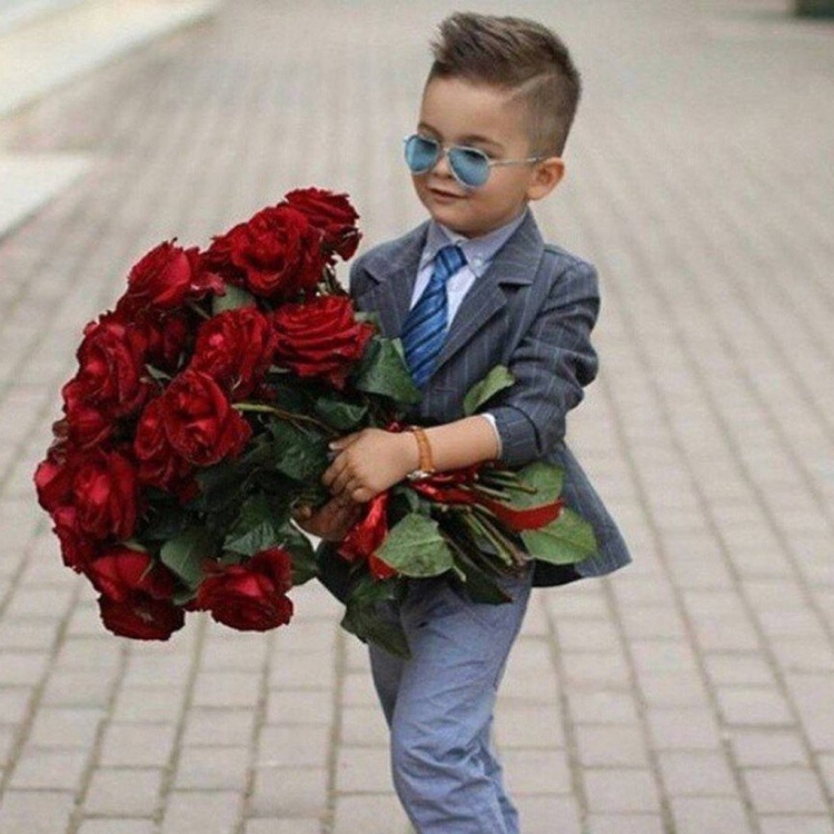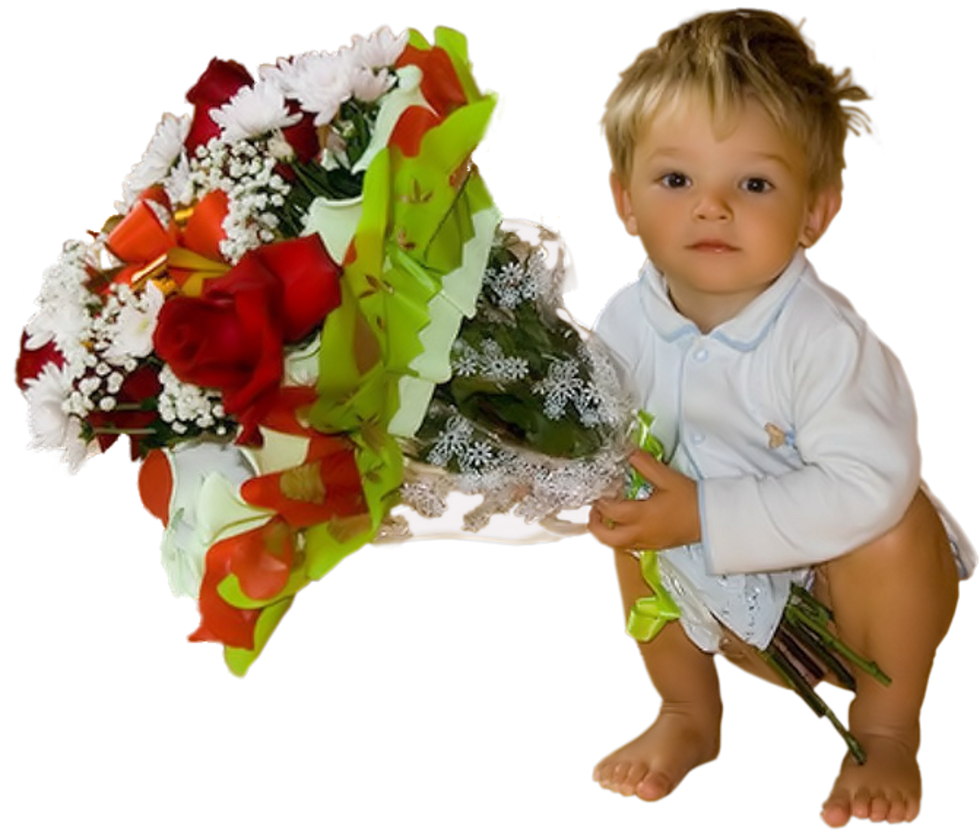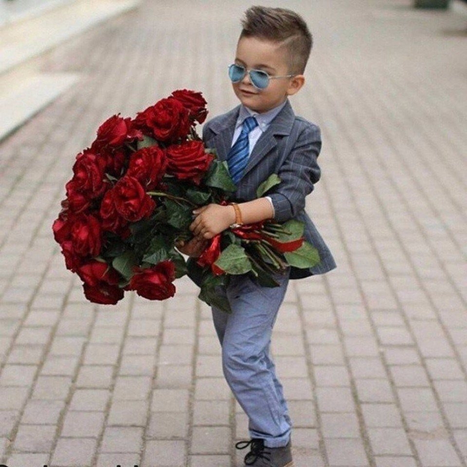 Маленький мальчик с букетом цветов