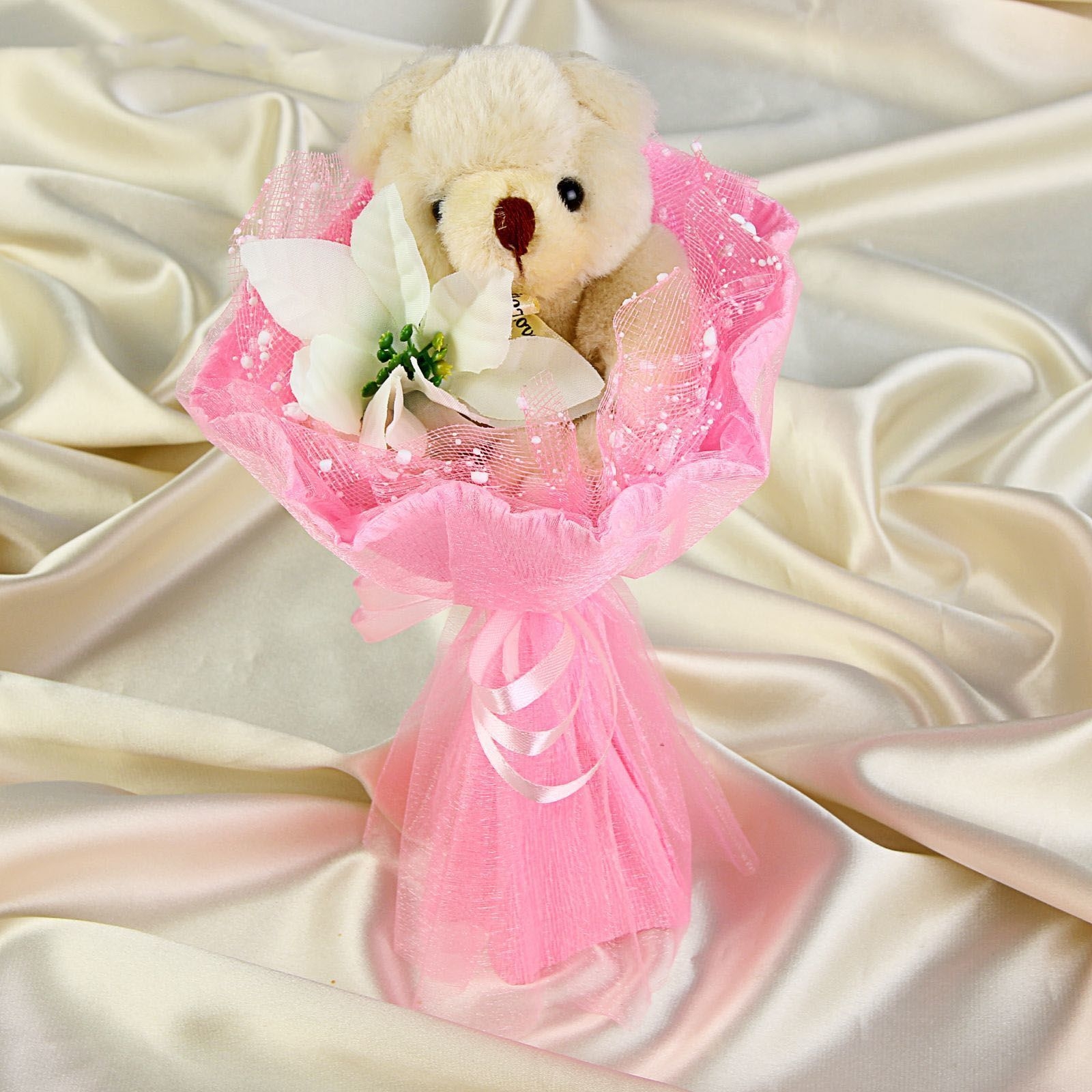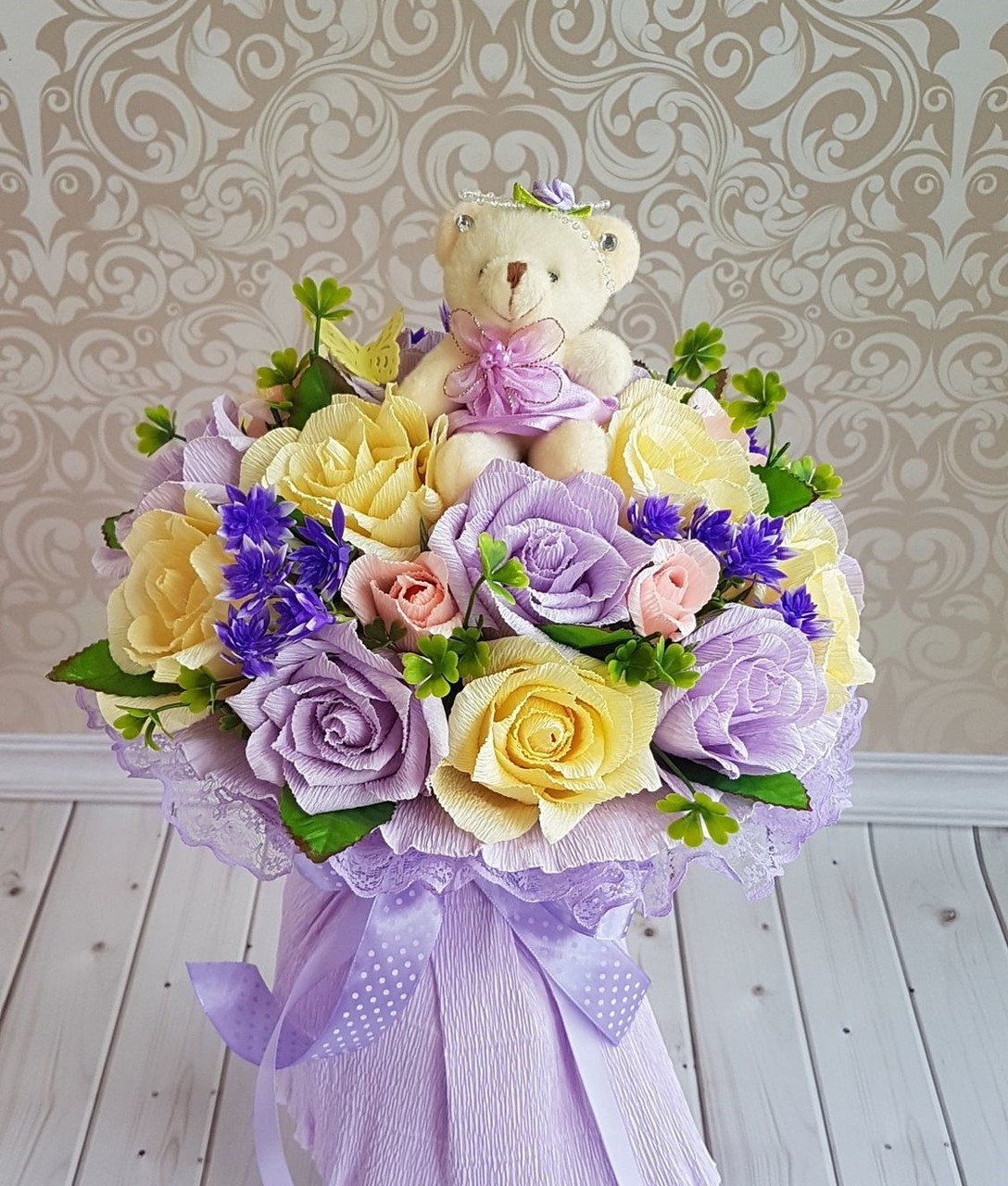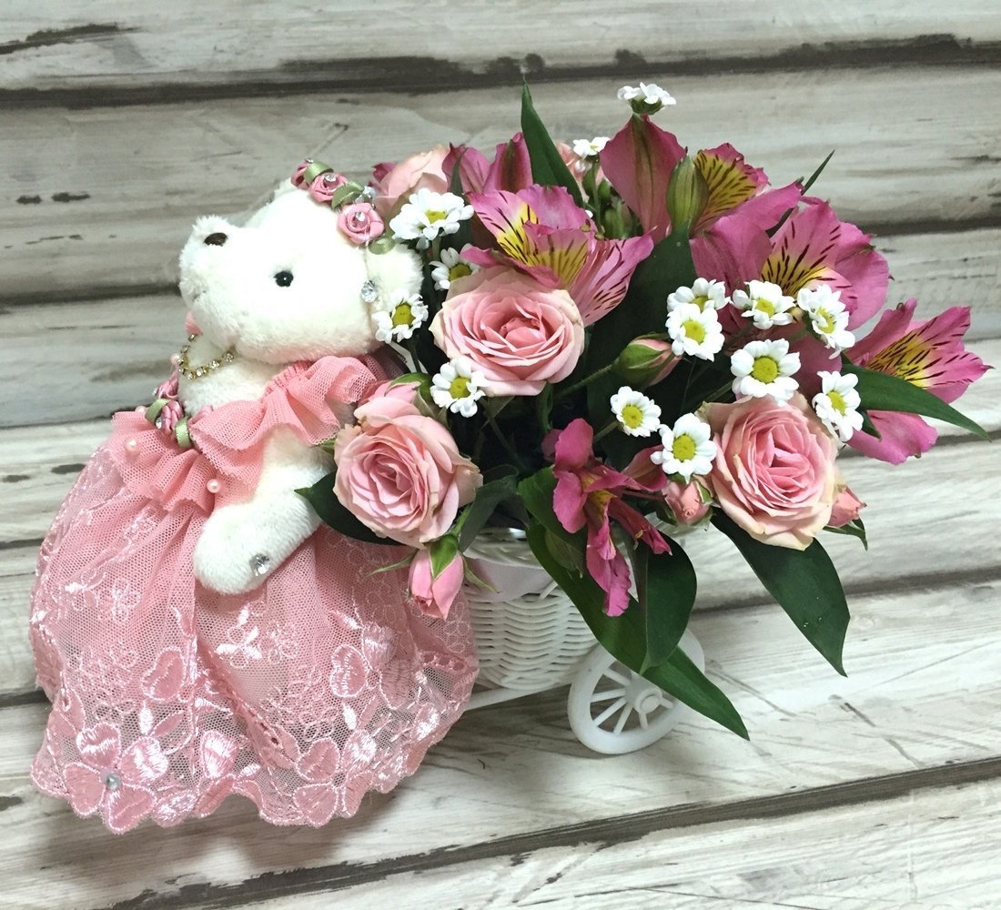 Плюшевый мишка с цветами