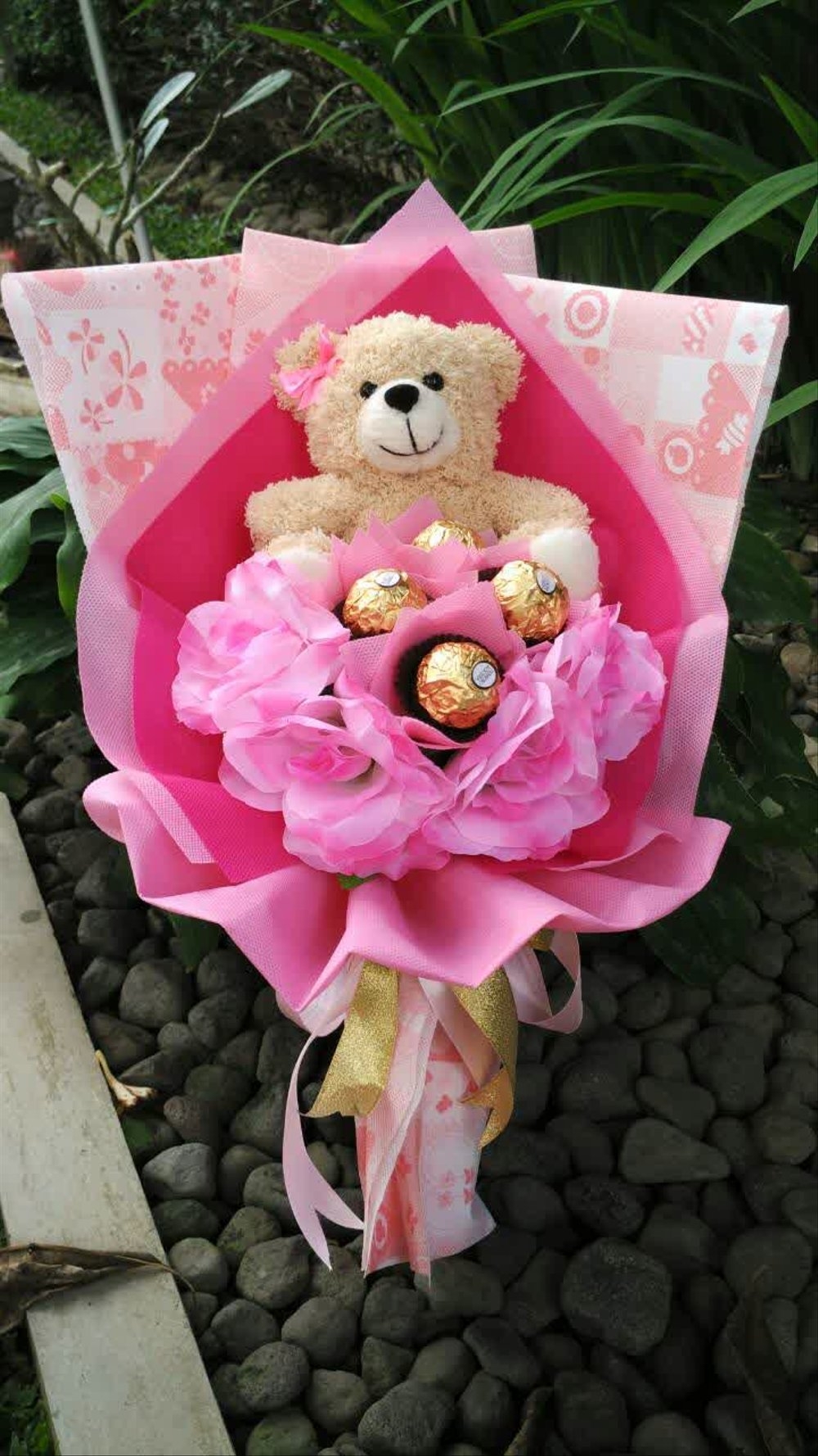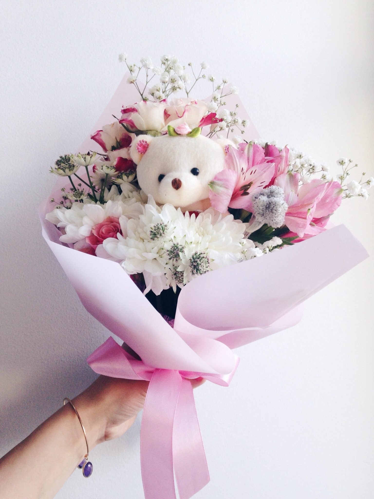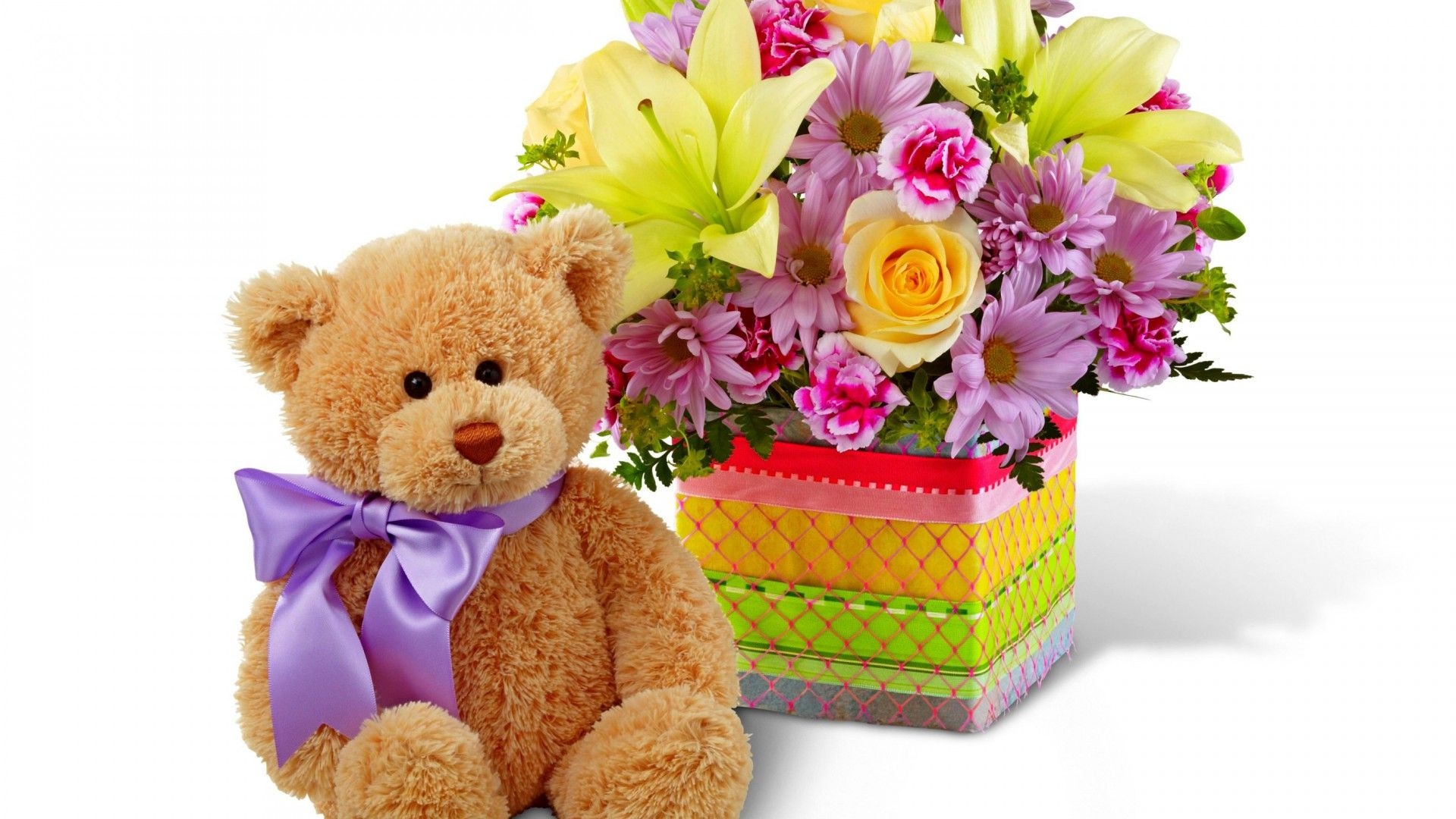 Плюшевый мишка с цветами