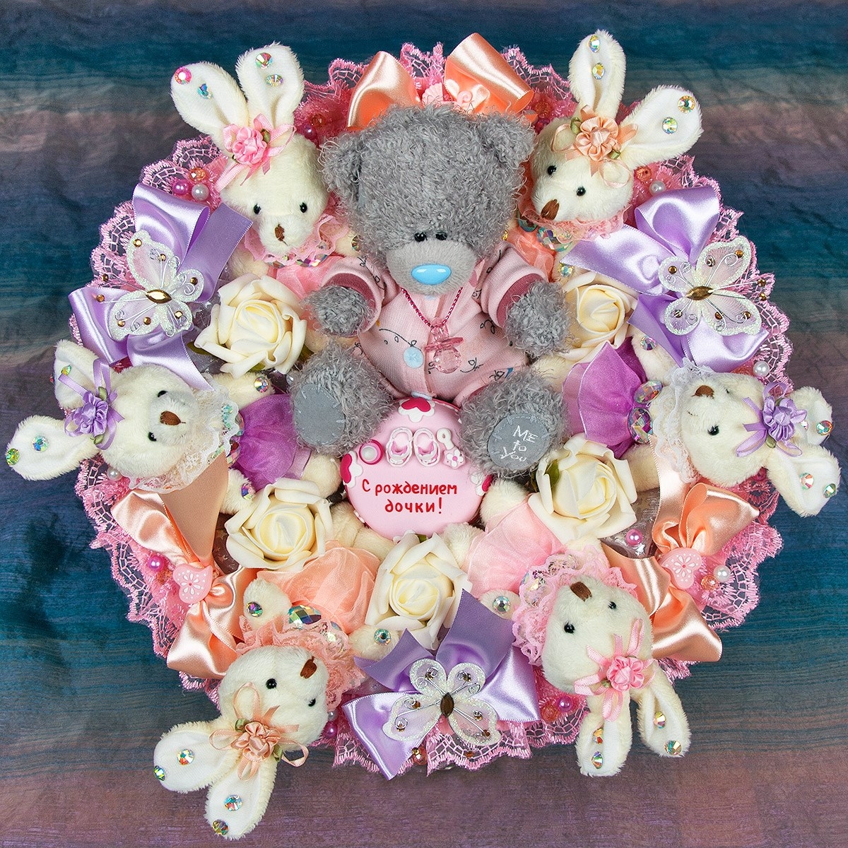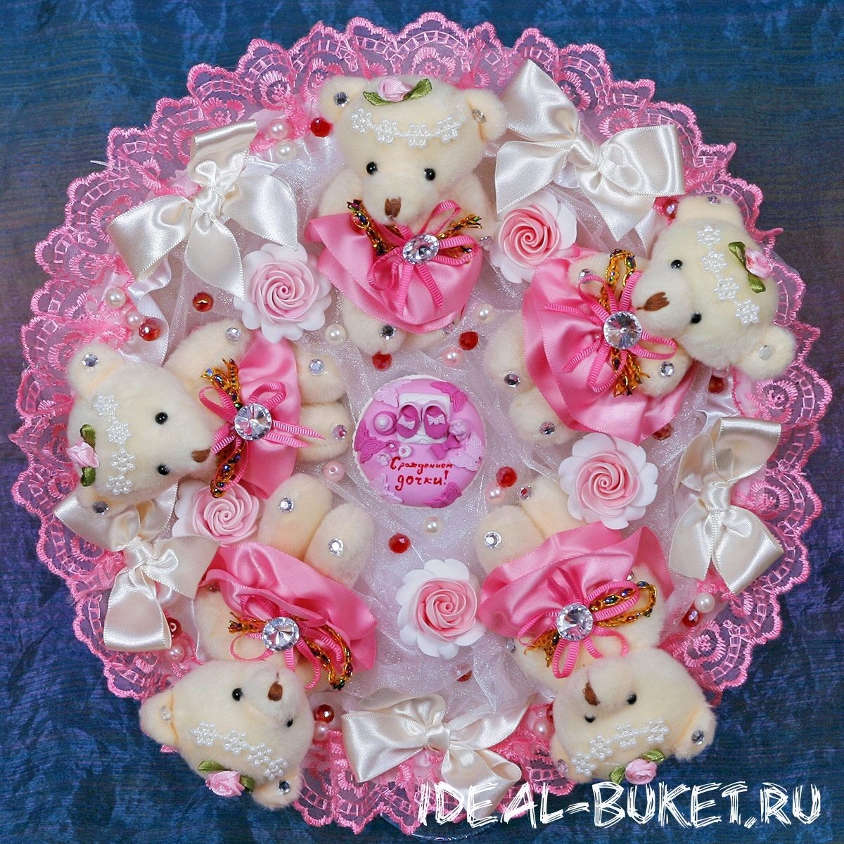 Букет из игрушек на выписку из роддома для девочки