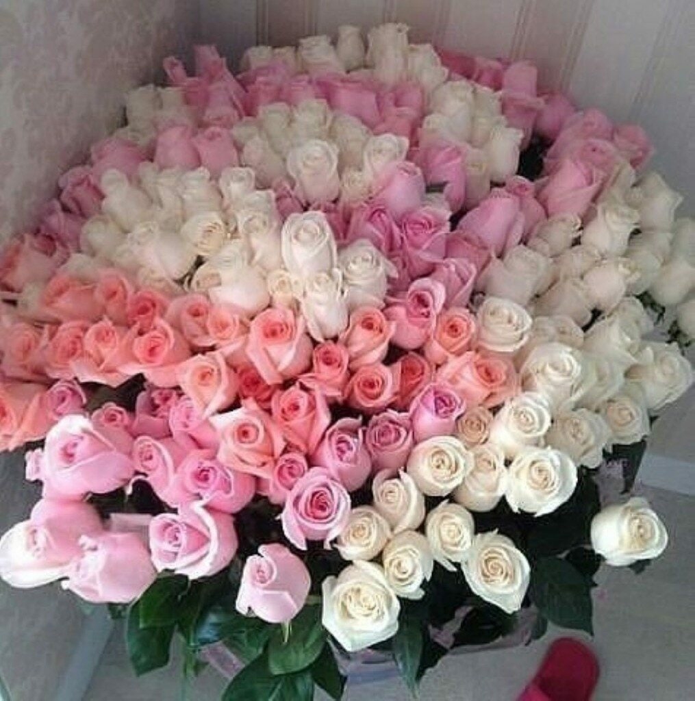Большой букет цветов на кровати