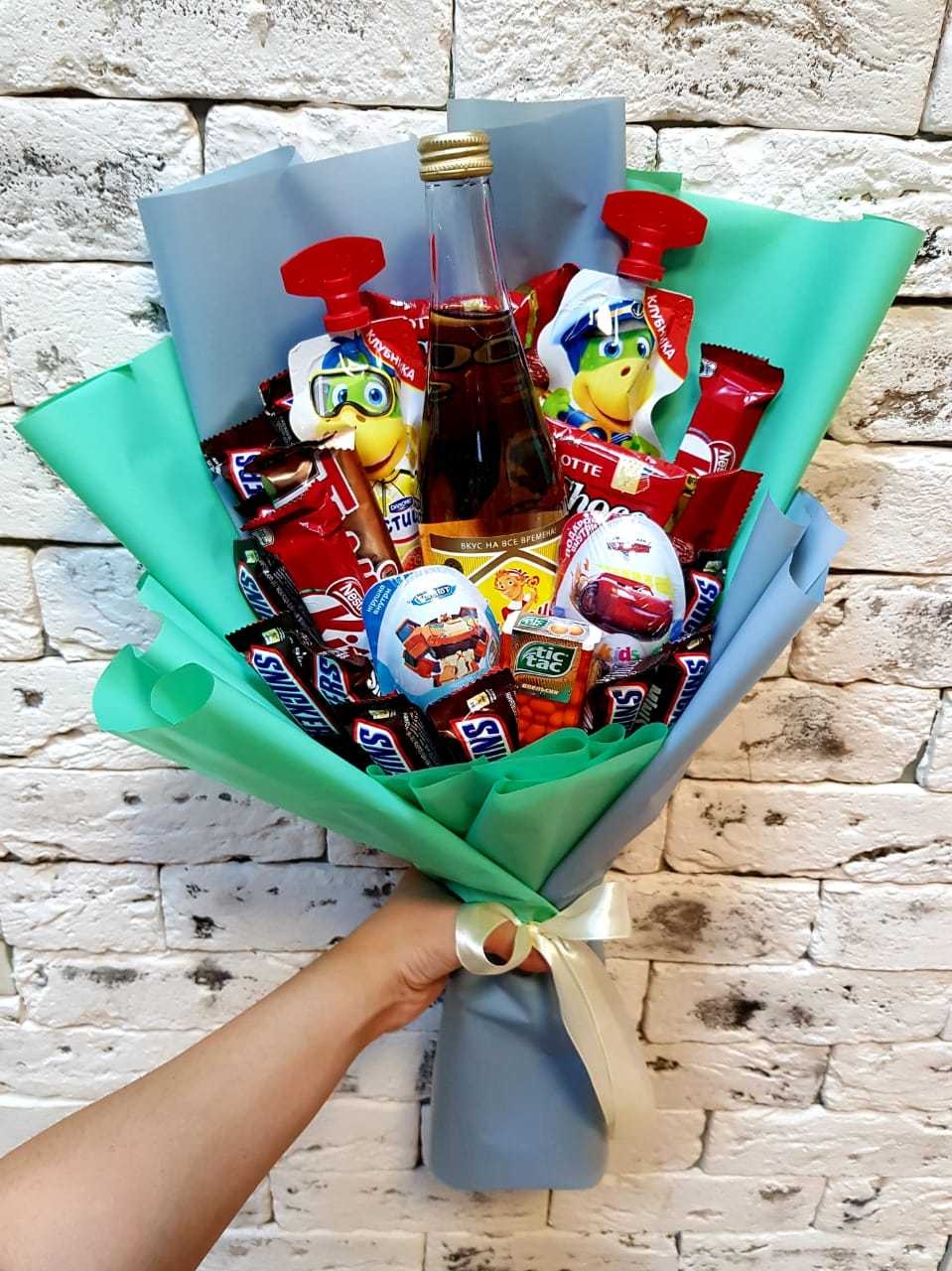Детские букеты из сладостей мальчику