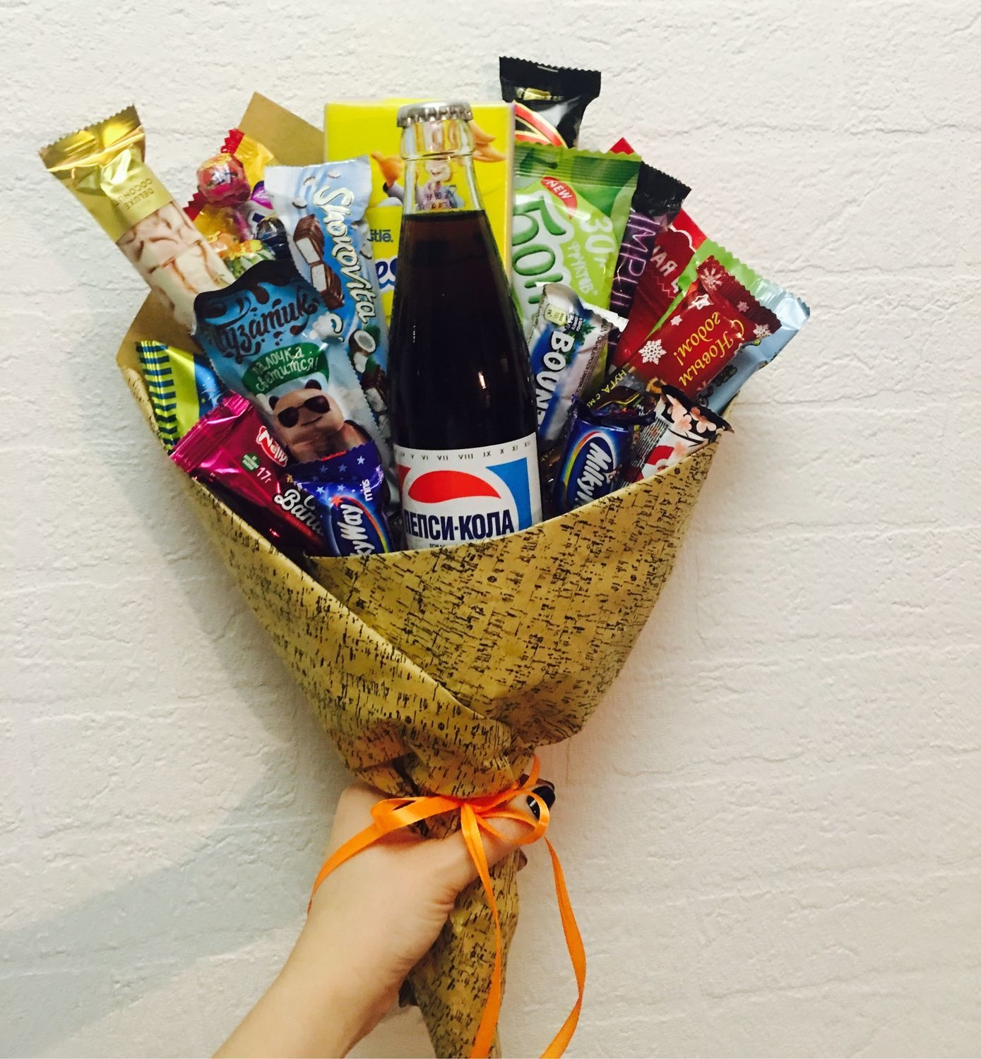Подарок из лимонада и шоколада для мальчиков