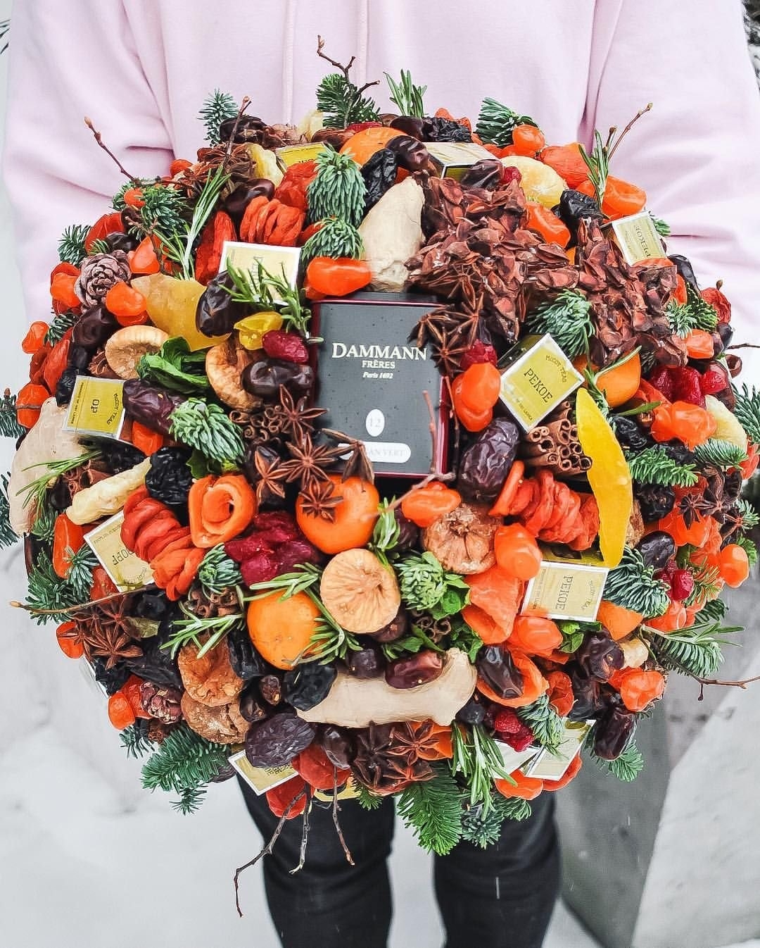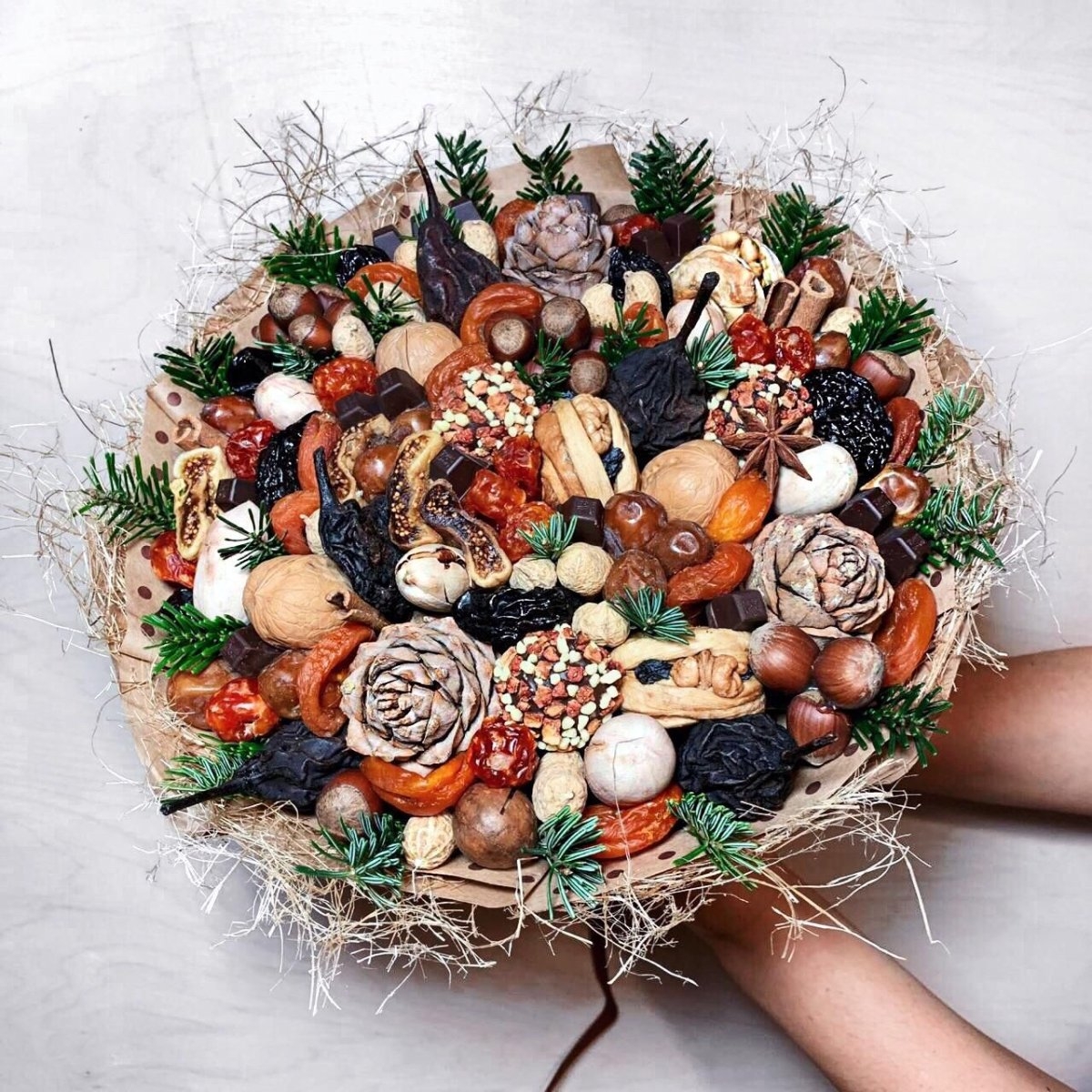 Новогодний букет из сухофруктов и орехов
