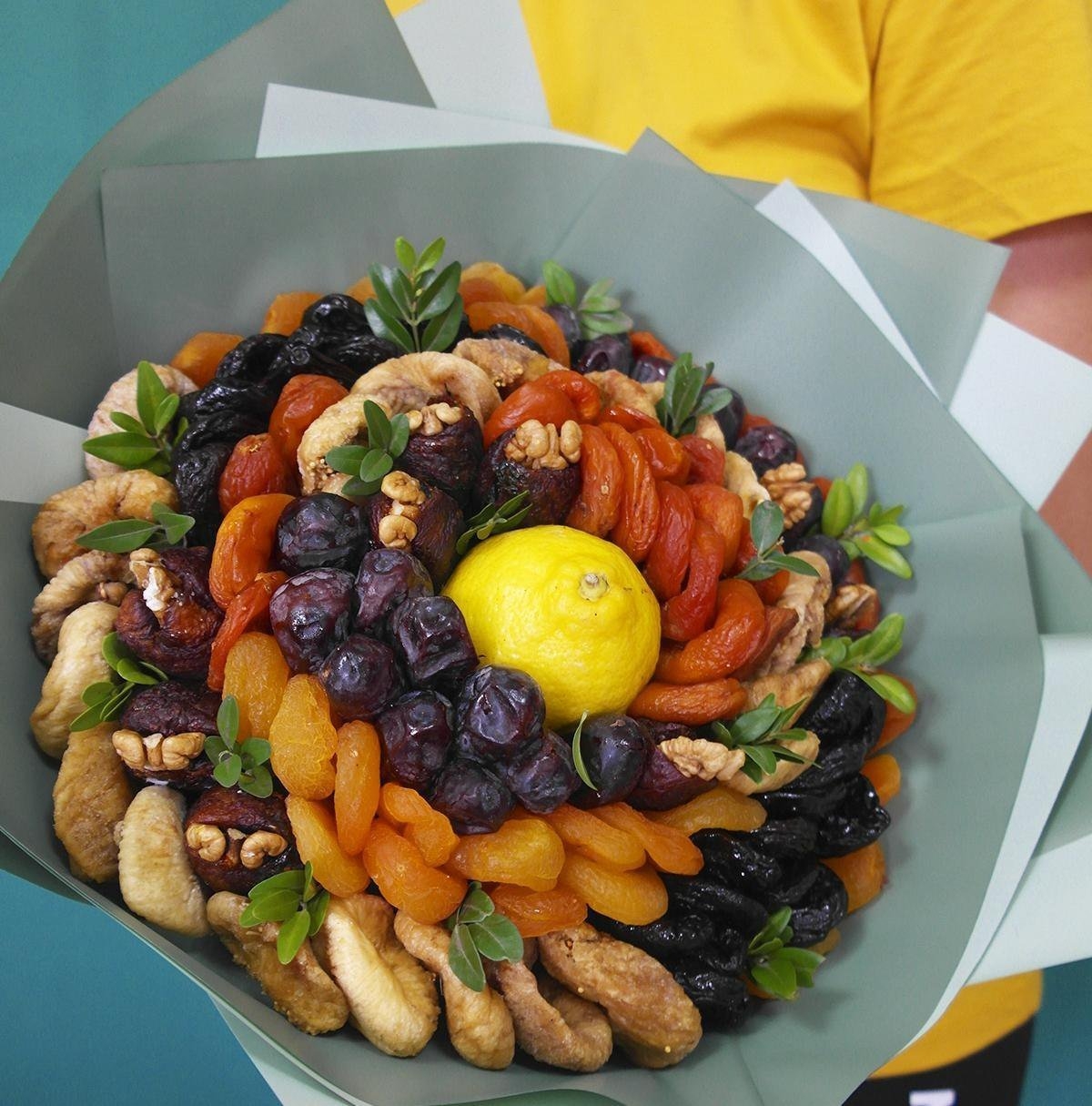 Букет из сухофруктов с лимоном в центре