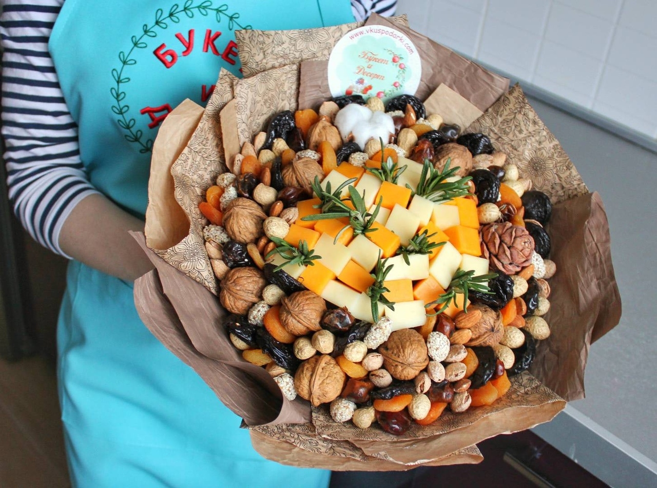 Букет из орехов и сухофруктов и сыра