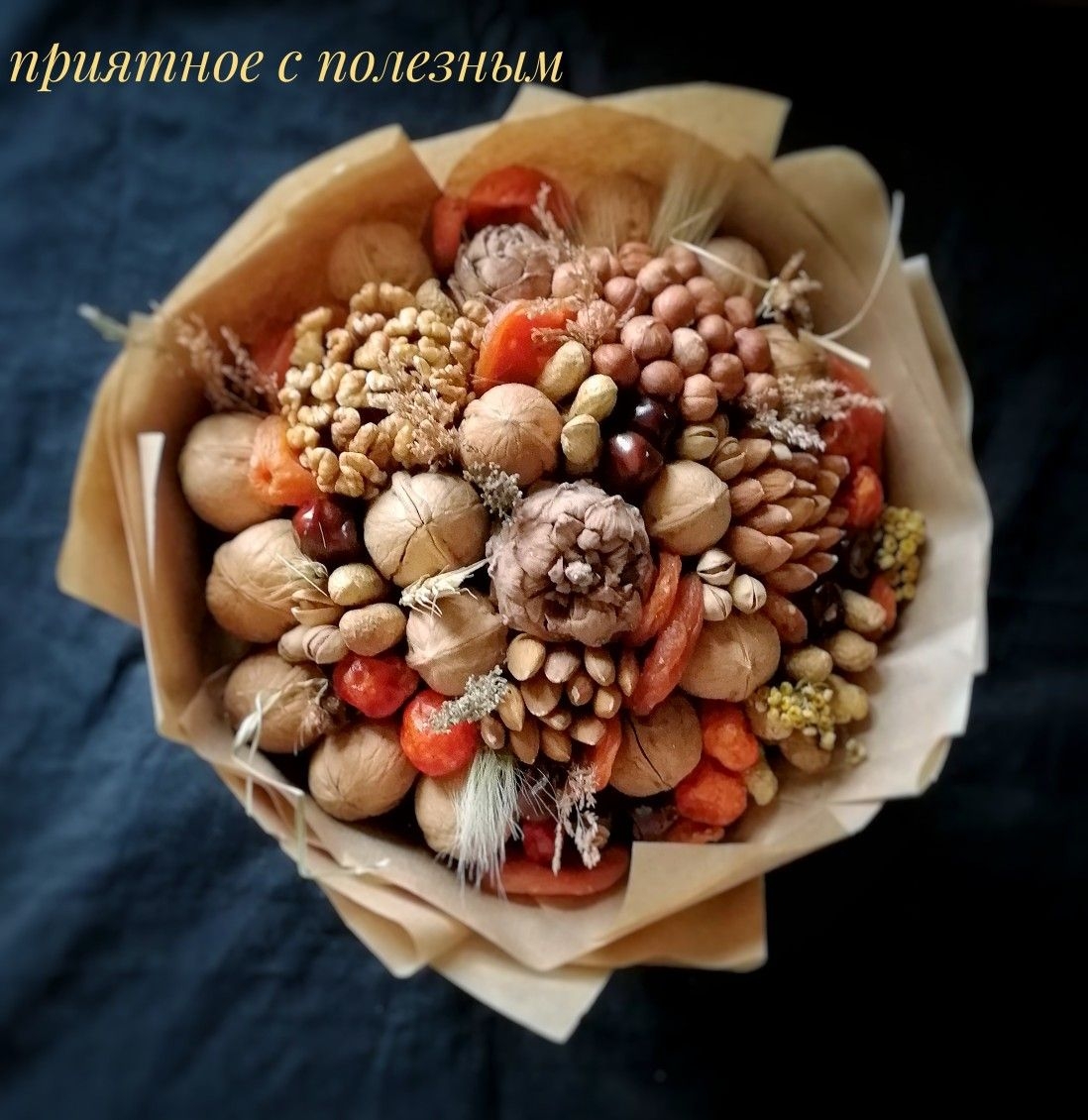 Букеты из орехов и сухофруктов и сухоцветов