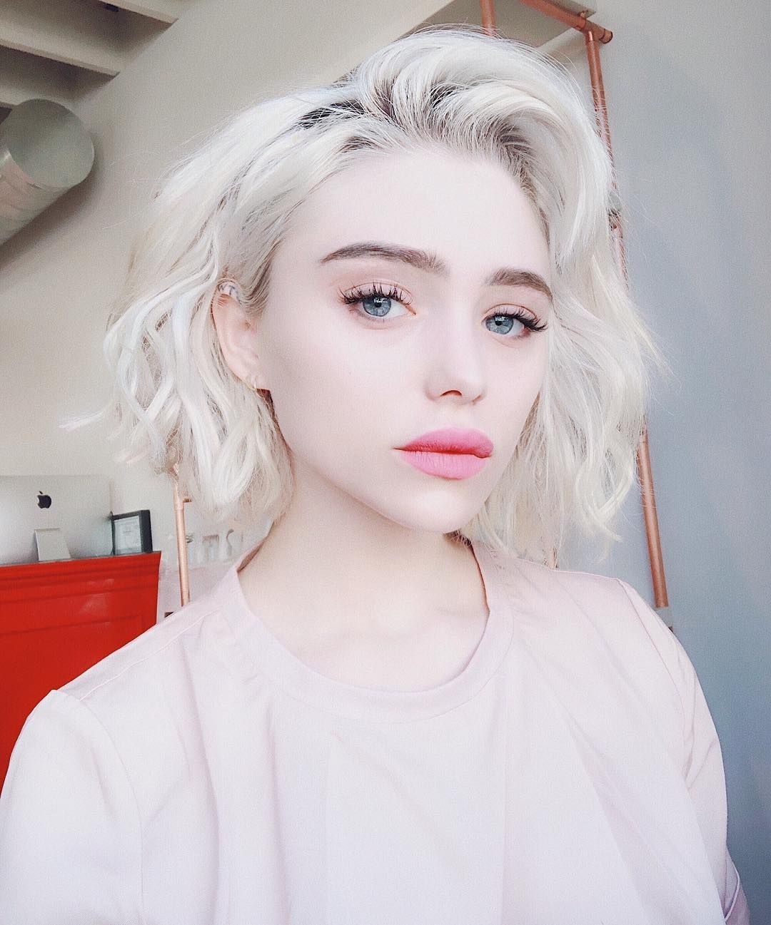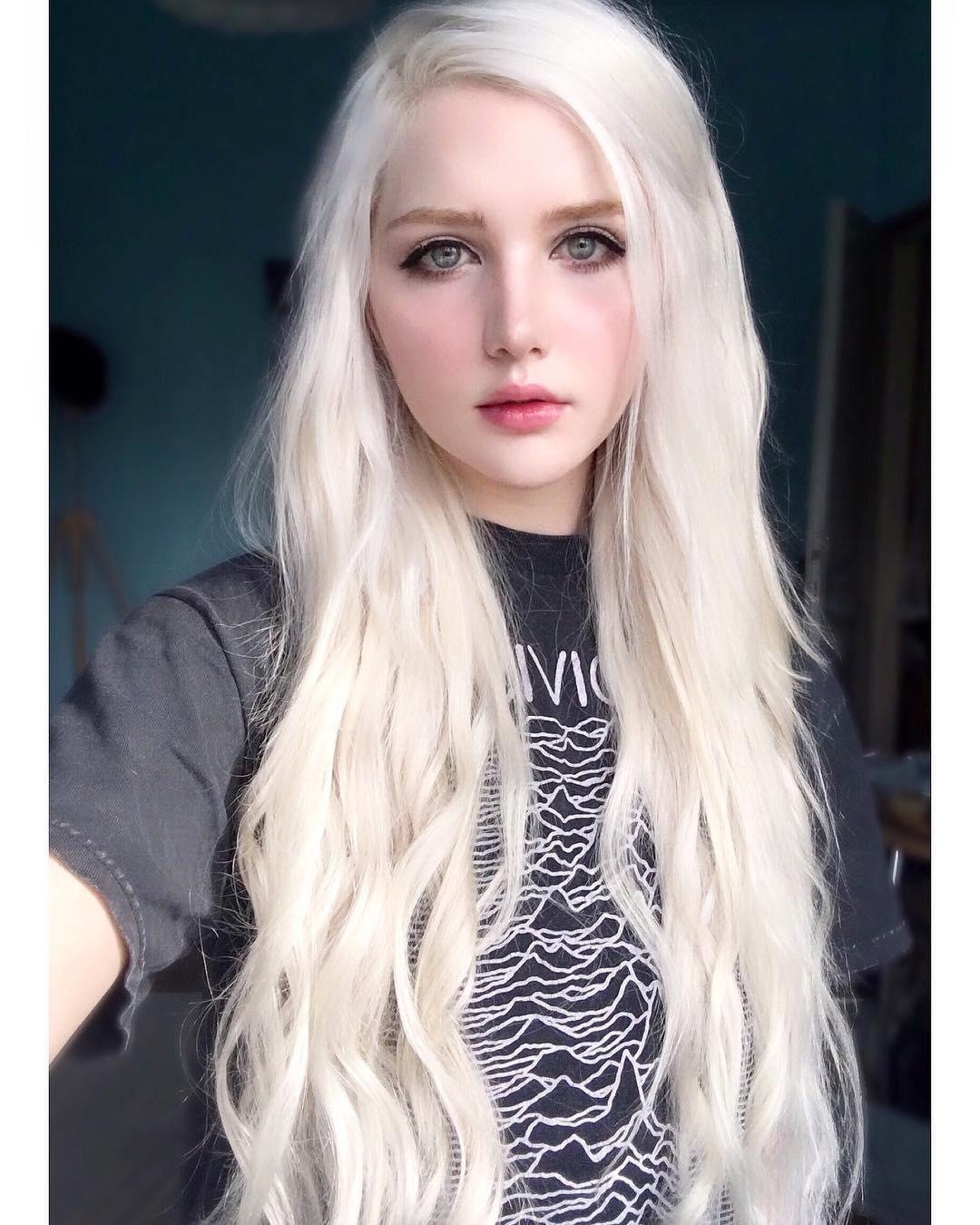 Девушка с белыми волосами селфи
