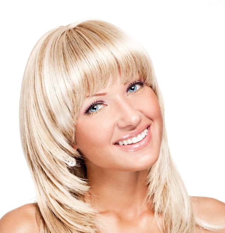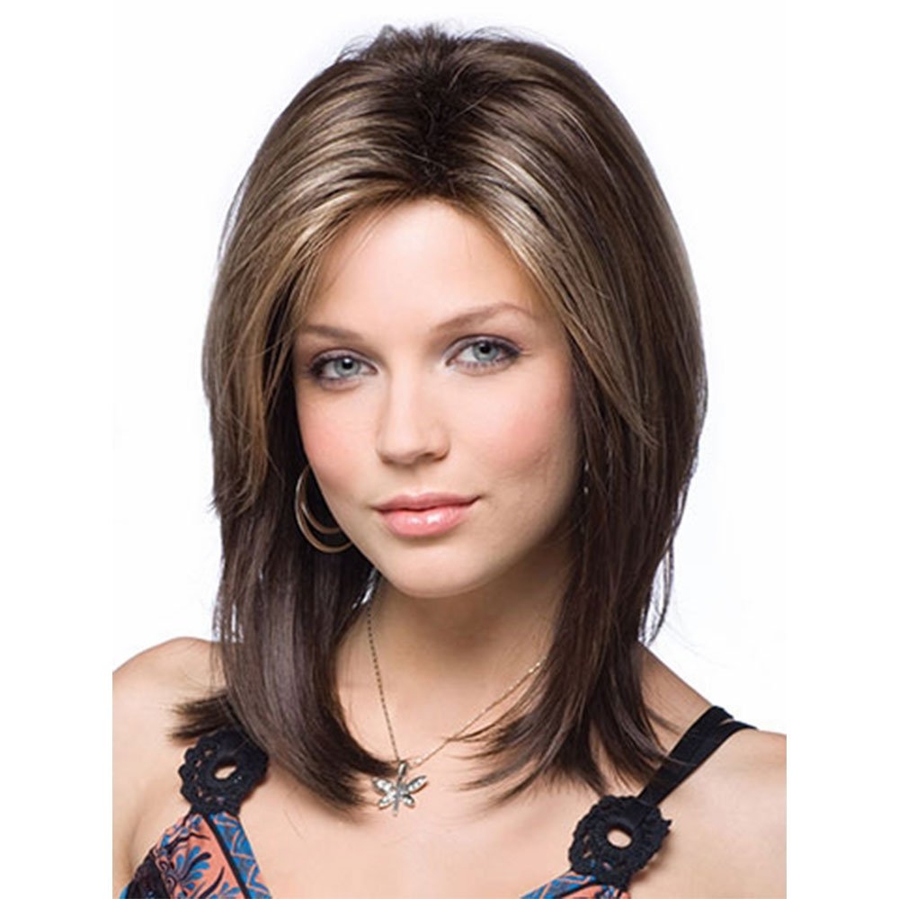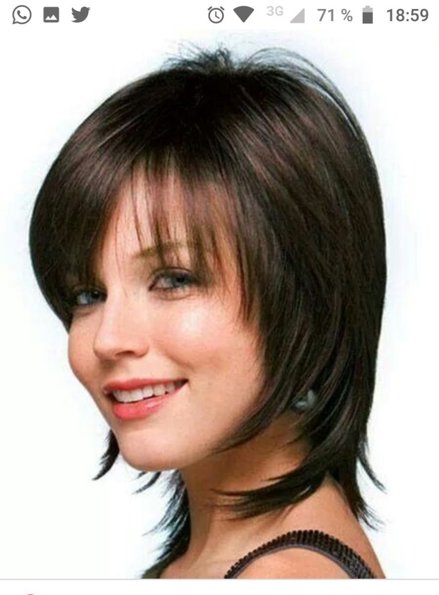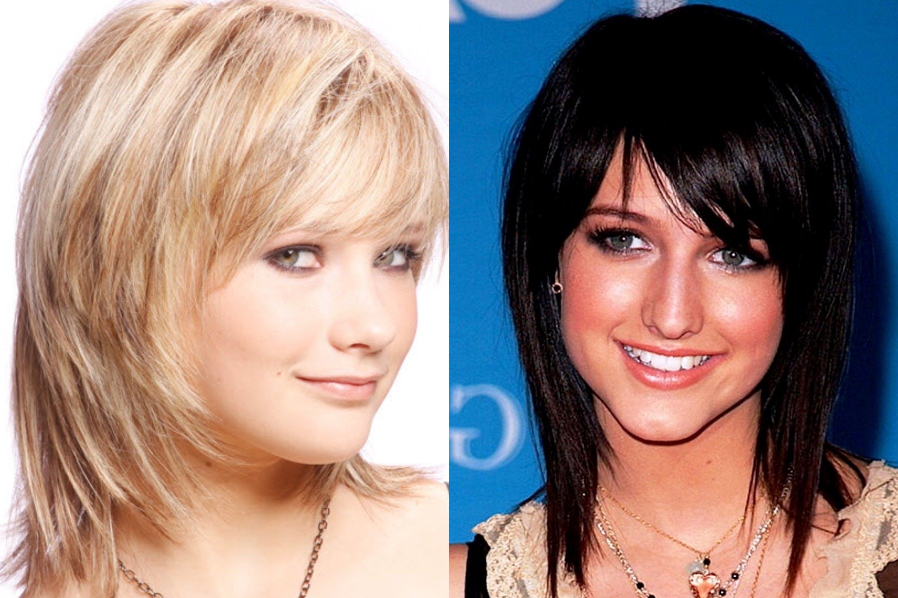 Стильные стрижки Каскад на средние волосы с челкой для круглого лица