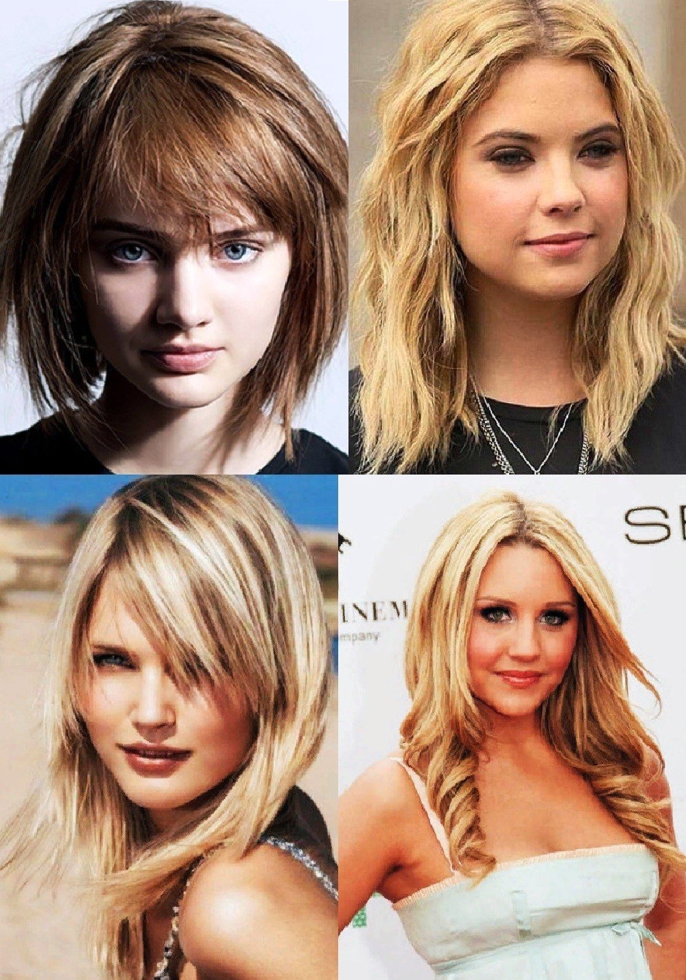 Стрижка для пухлого лица женская на средние волосы с челкой