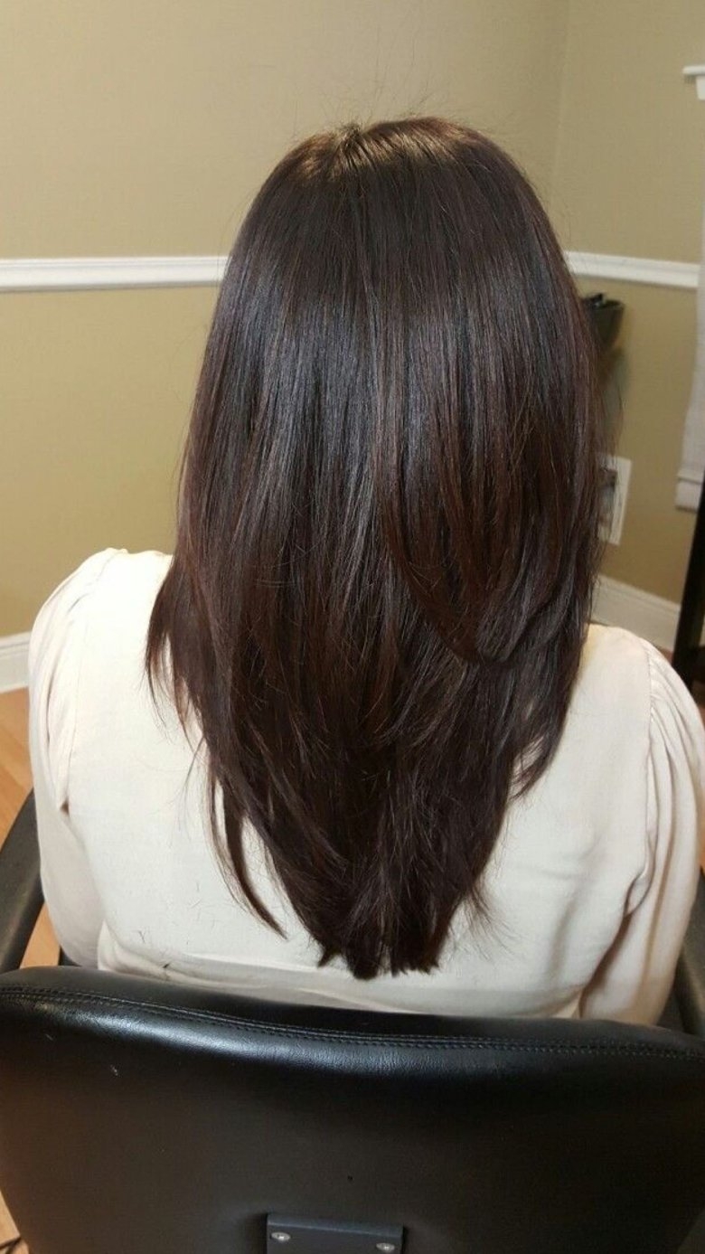 Ровная стрижка на длинные волосы