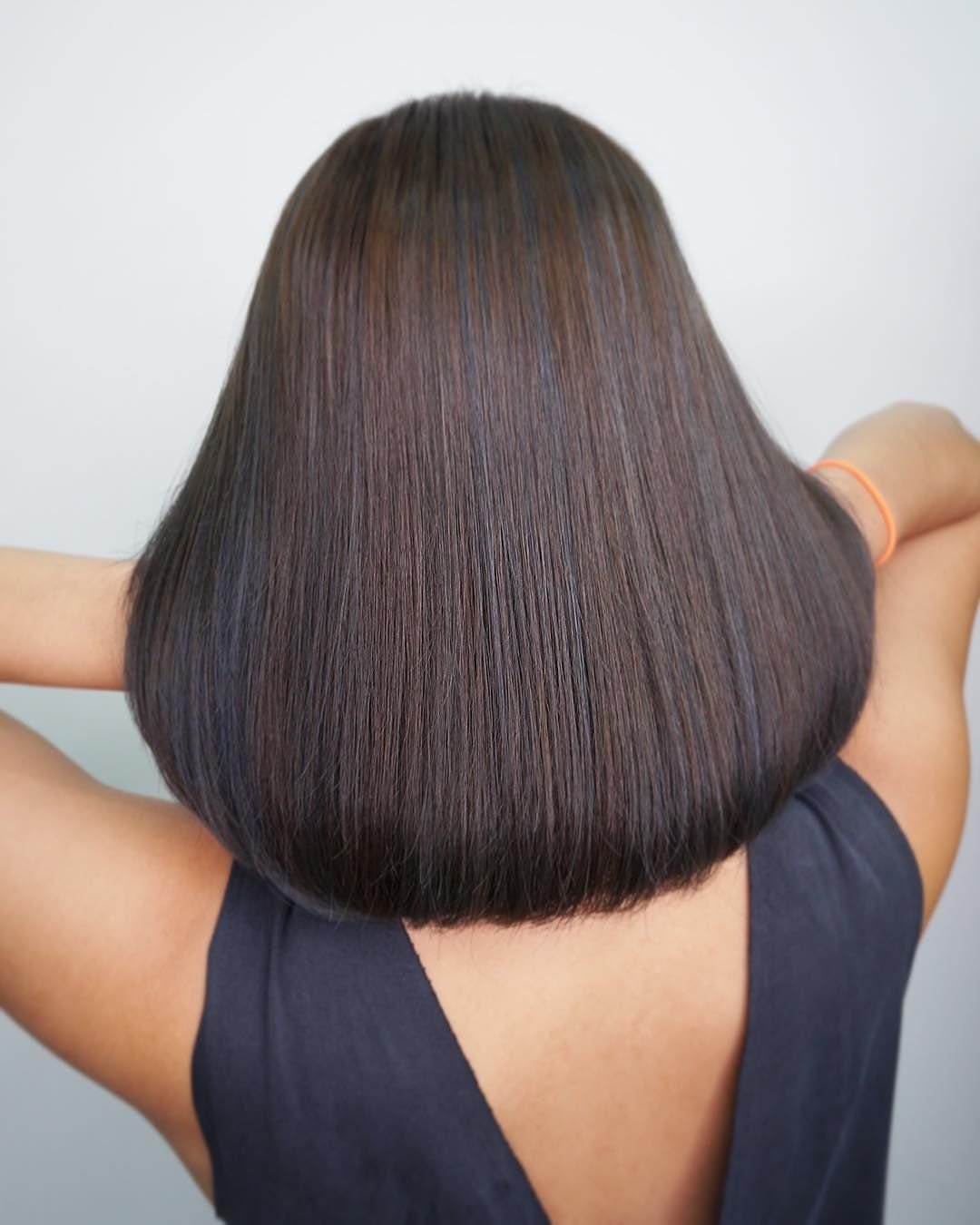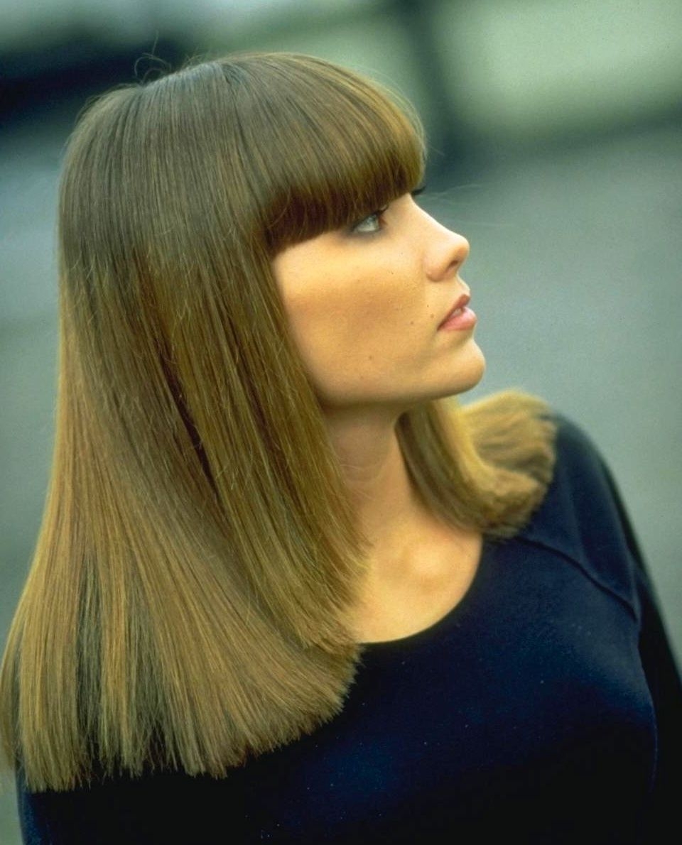Прямой срез волос с челкой