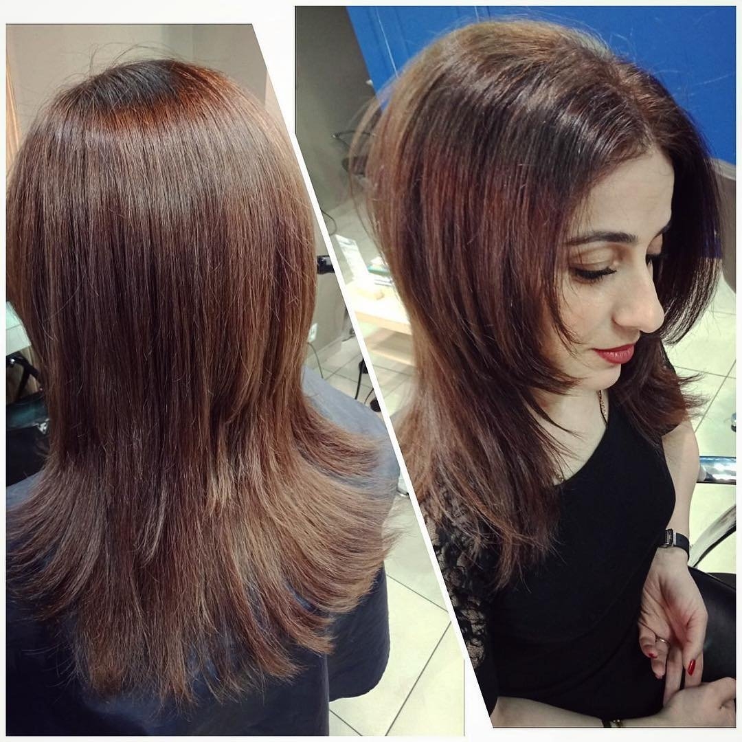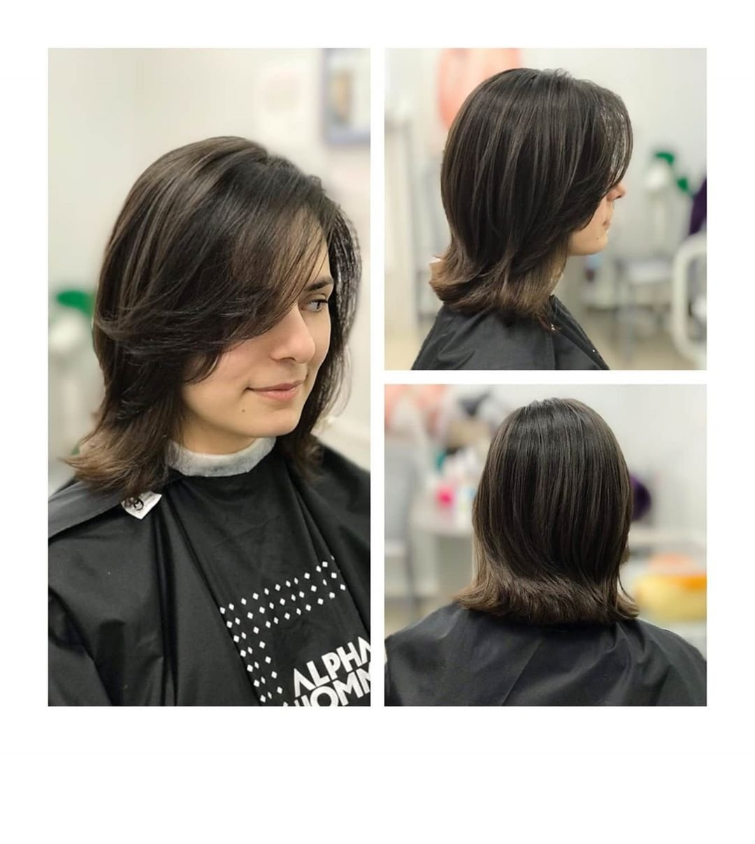 Стрижка Шегги на средние прямые волосы
