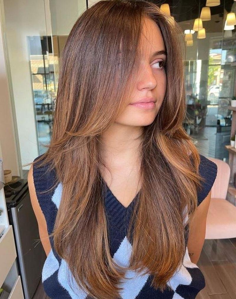 Стрижка Шегги на длинные волосы с челкой без укладки
