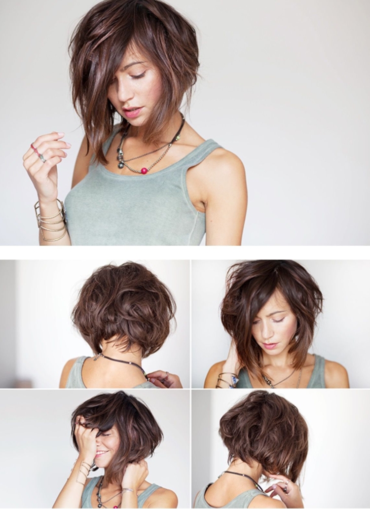Стрижка волос кудрявые Каскад на средние волосы с косой челкой