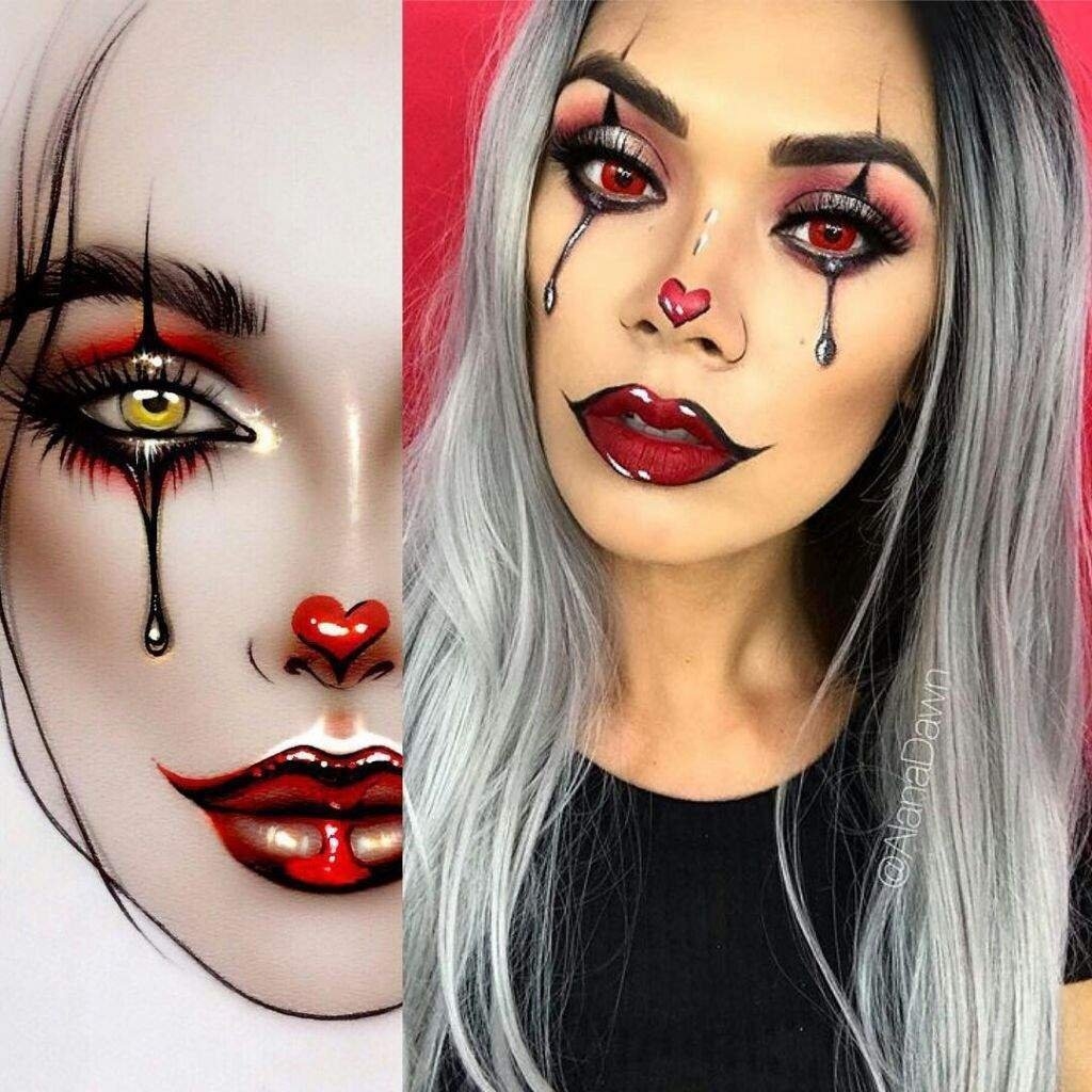 Харли Квинн макияж чёрно красные