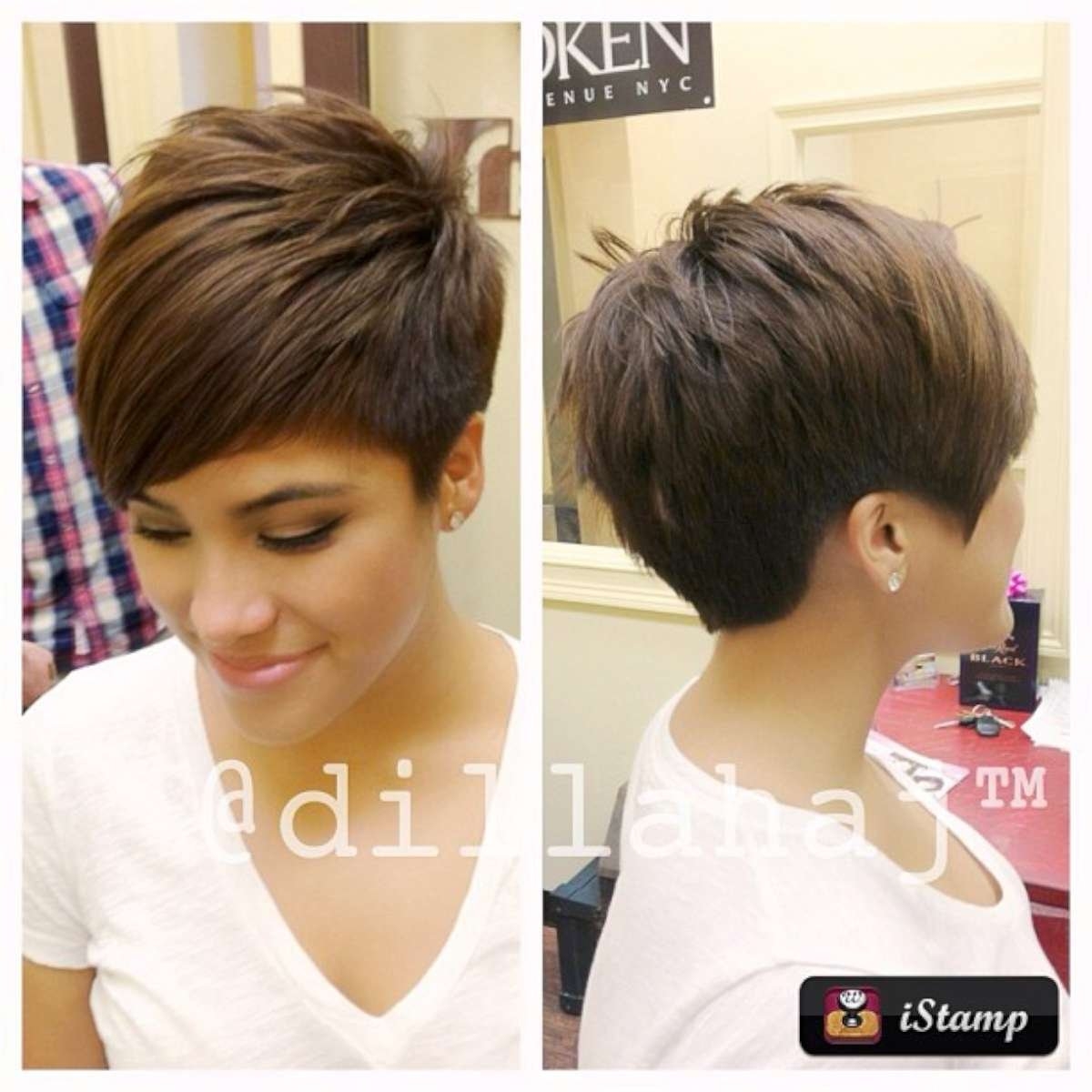 Стрижка Пикси вид сзади и спереди на короткие волосы с челкой