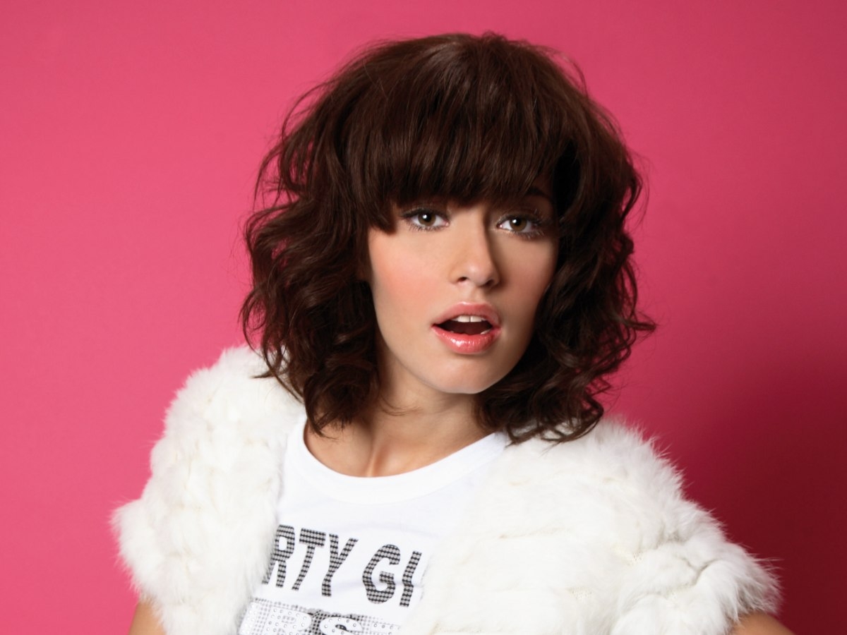 Стрижка на средние вьющиеся волосы с челкой