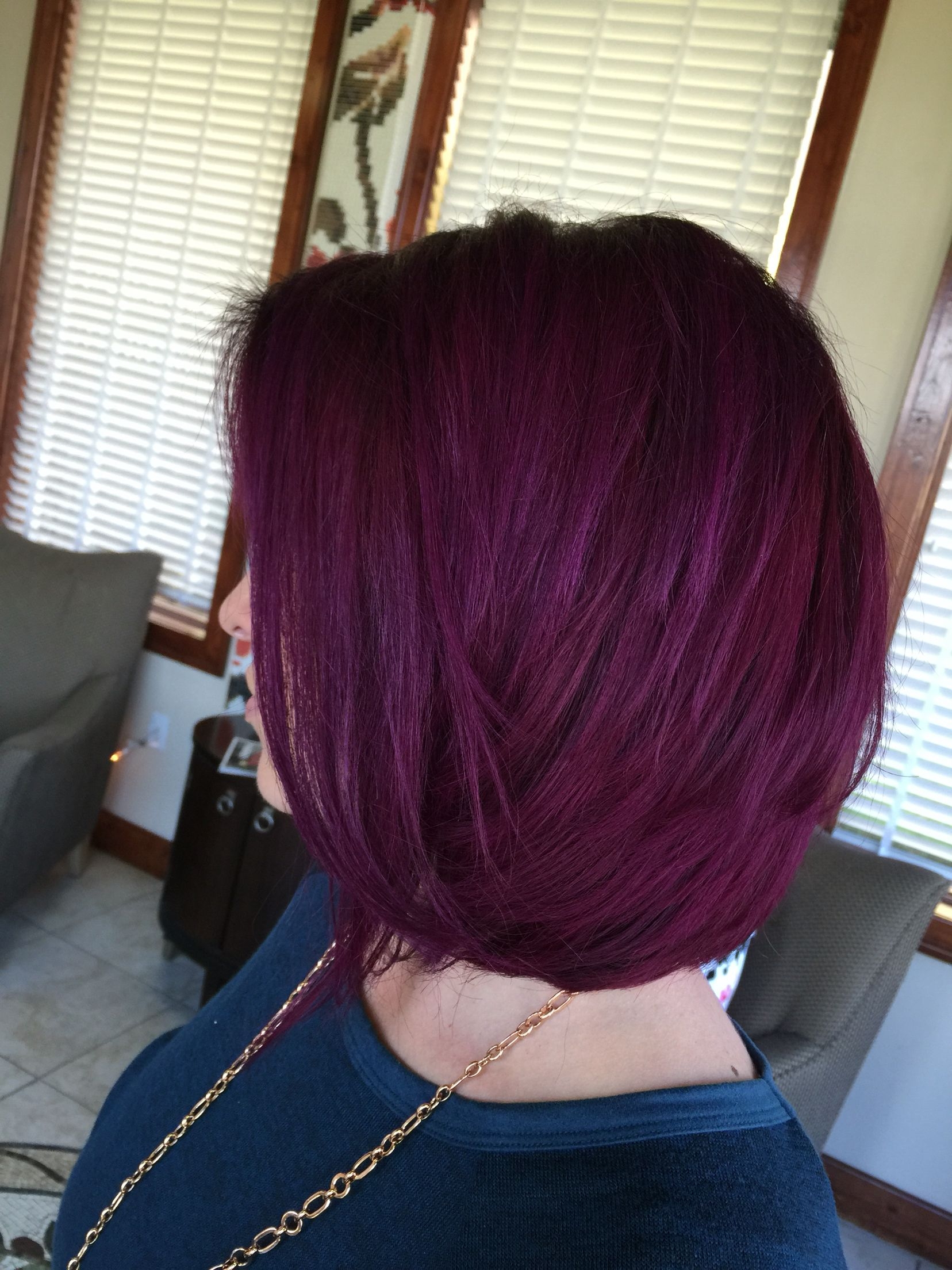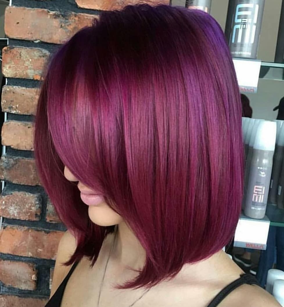 Баклажанный цвет волос на короткие волосы