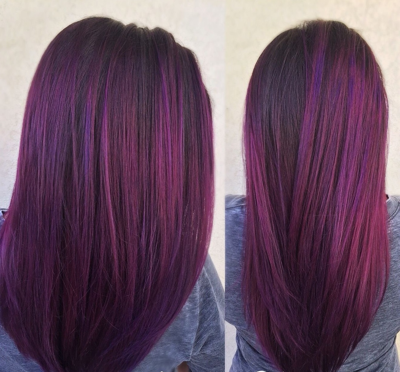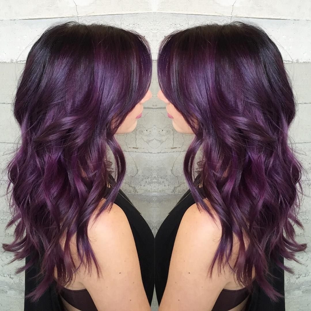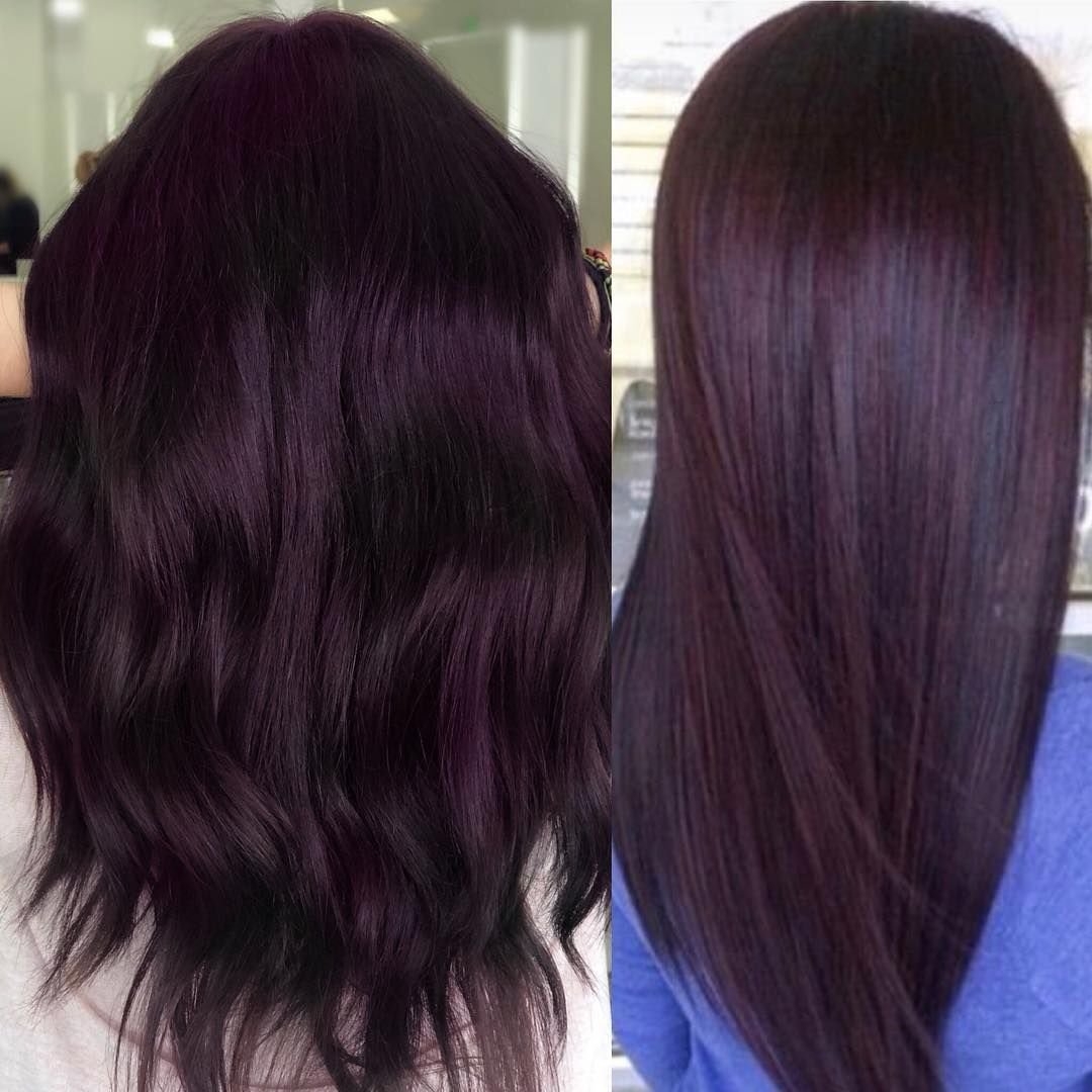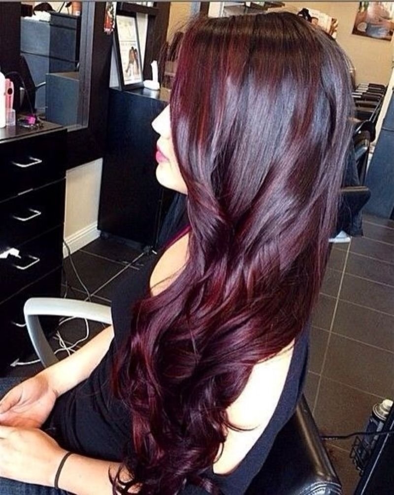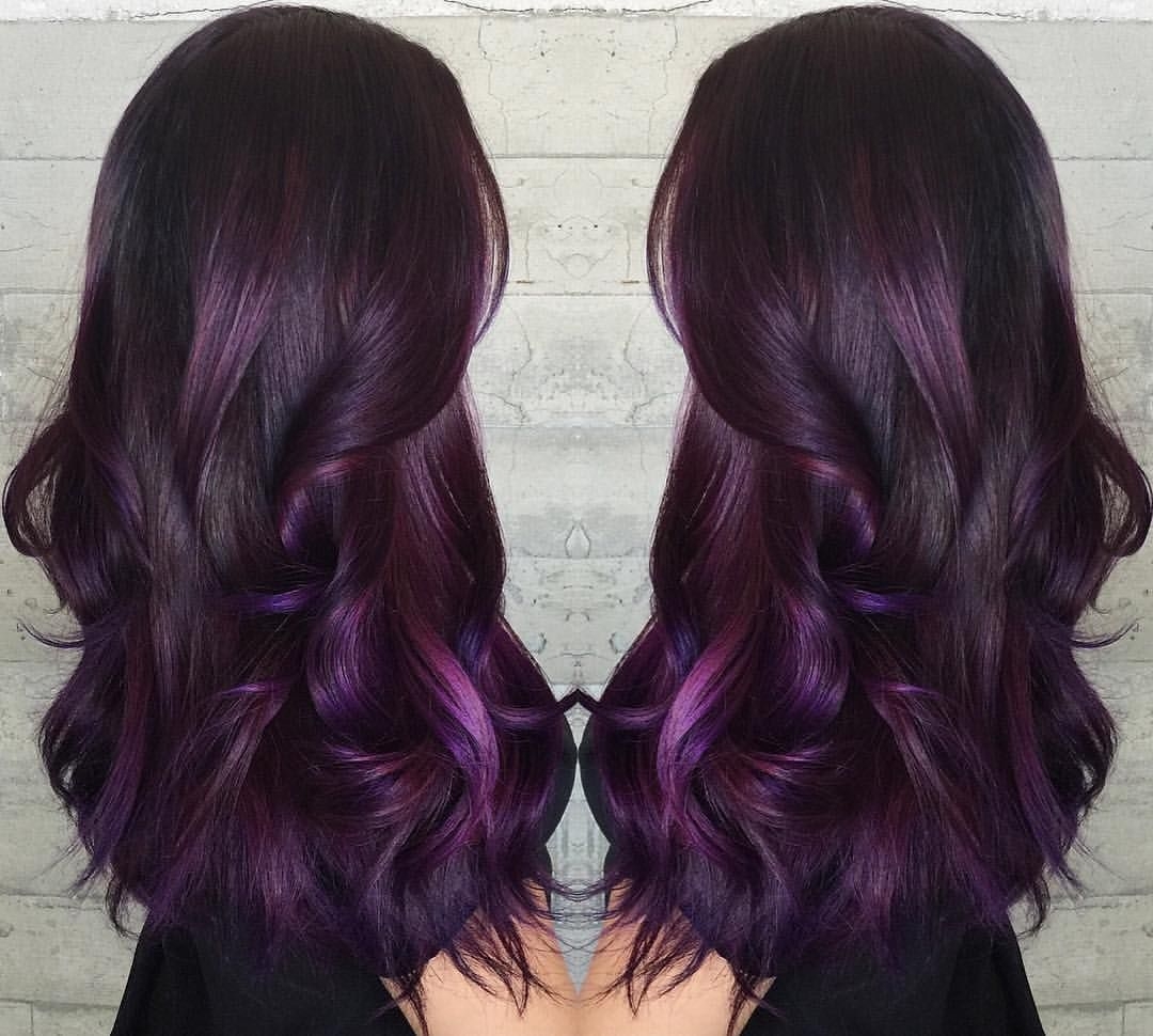 Цвет волос баклажан на темные длинные волосы