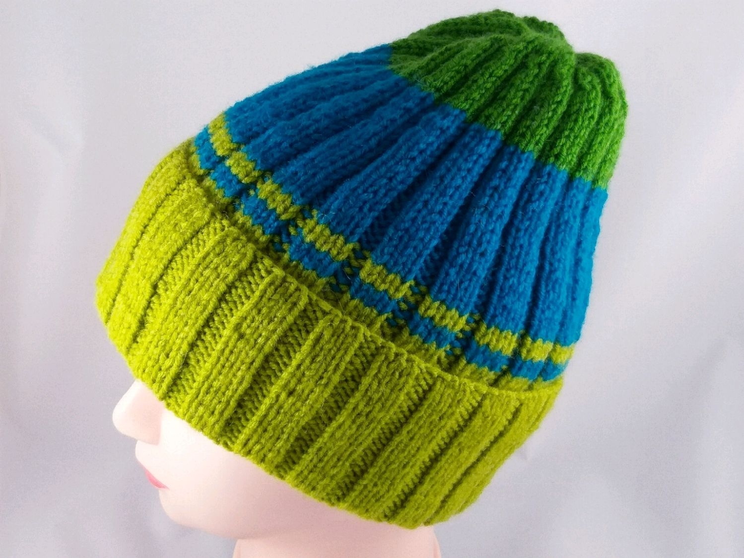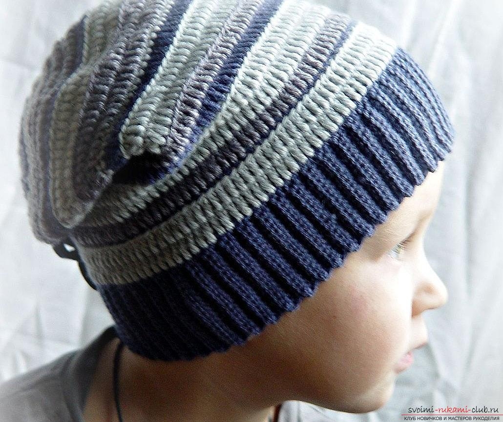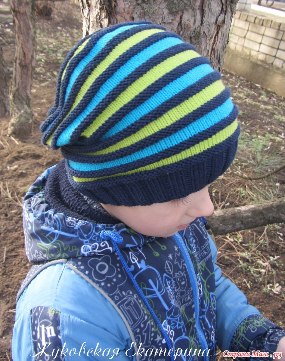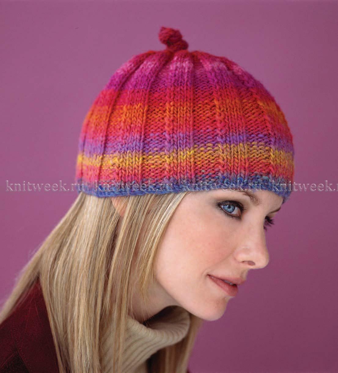 Шапка полосатые спицами резинкой