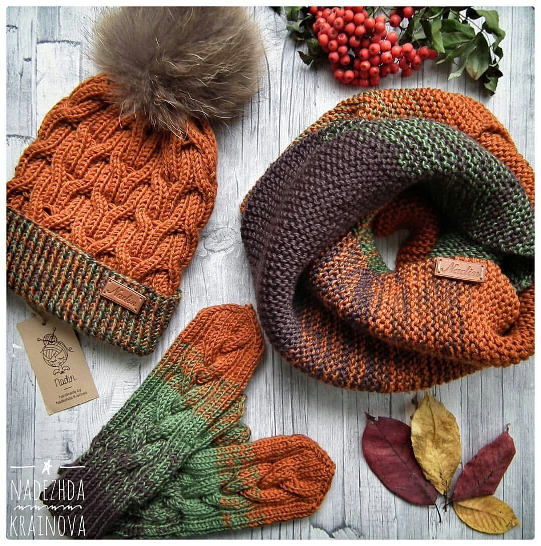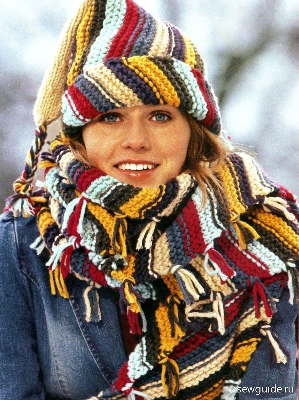 Шапки и шарфы из пестрой пряжи