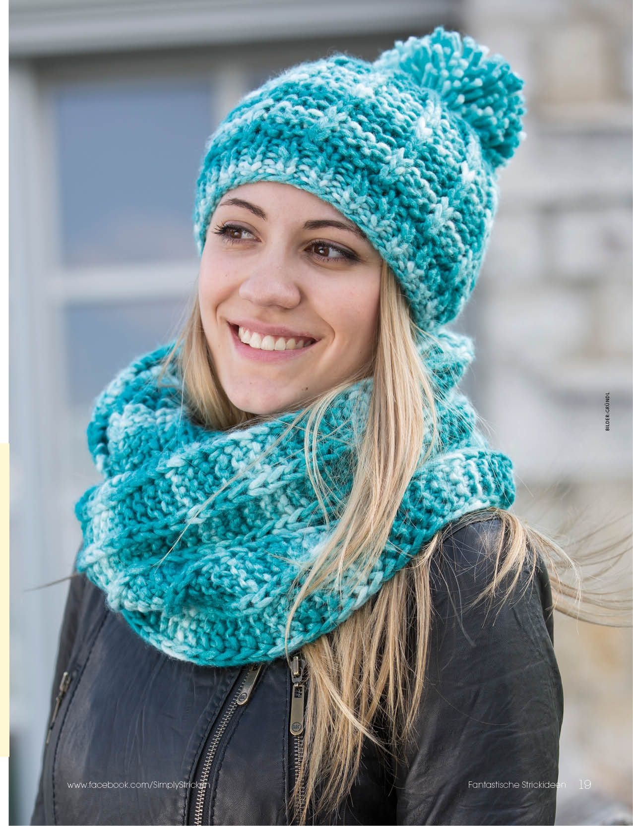 Двухцветная шапка спицами