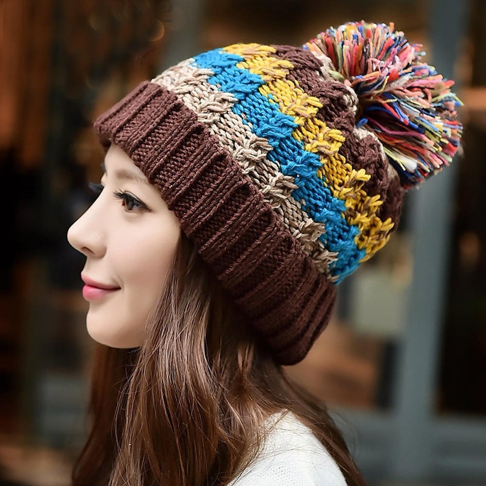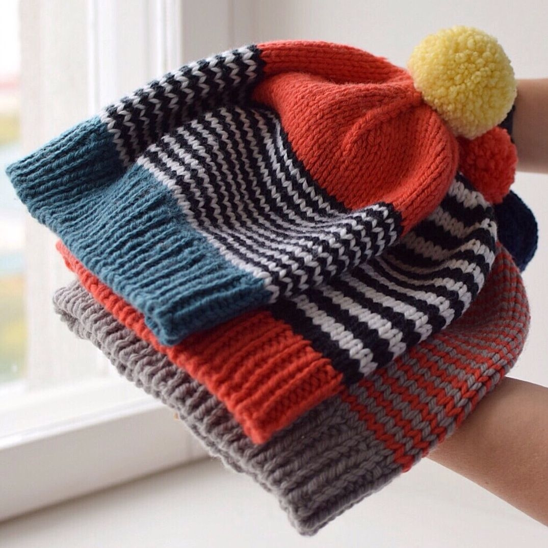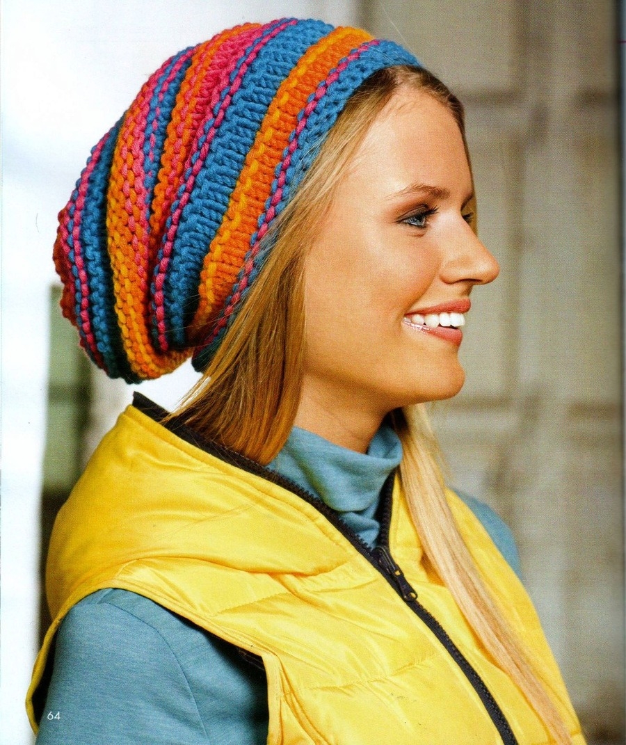 Вязаные шапки в полоску женские