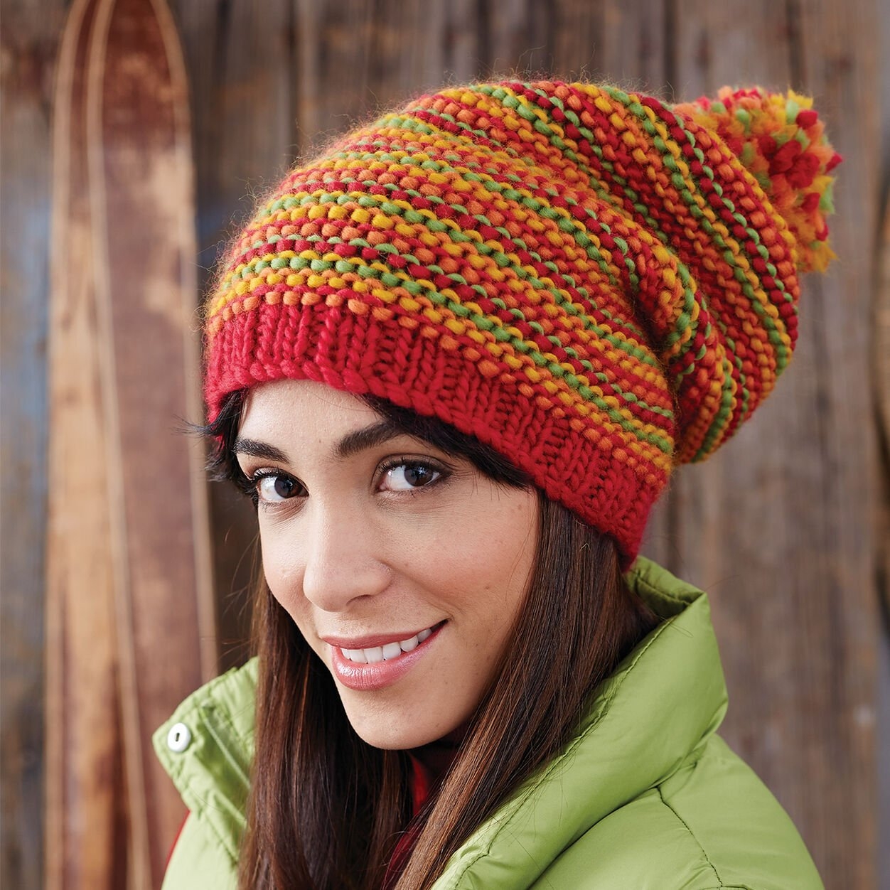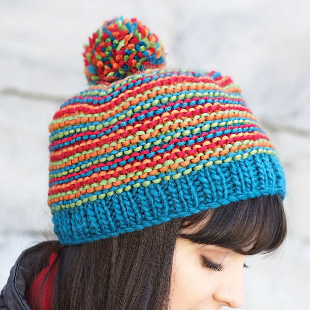 Шапка из разноцветной пряжи