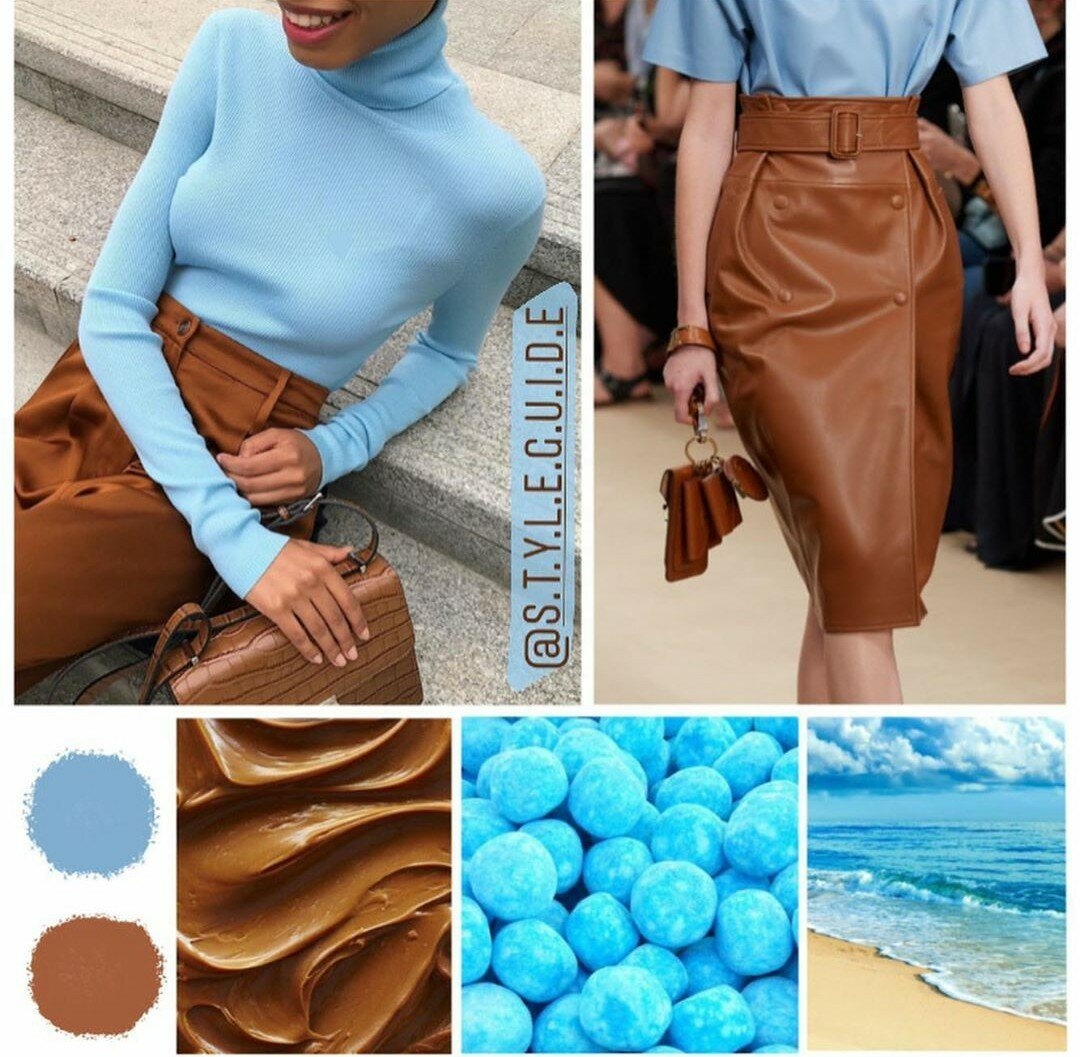 Сочетание голубого и коричневого в одежде
