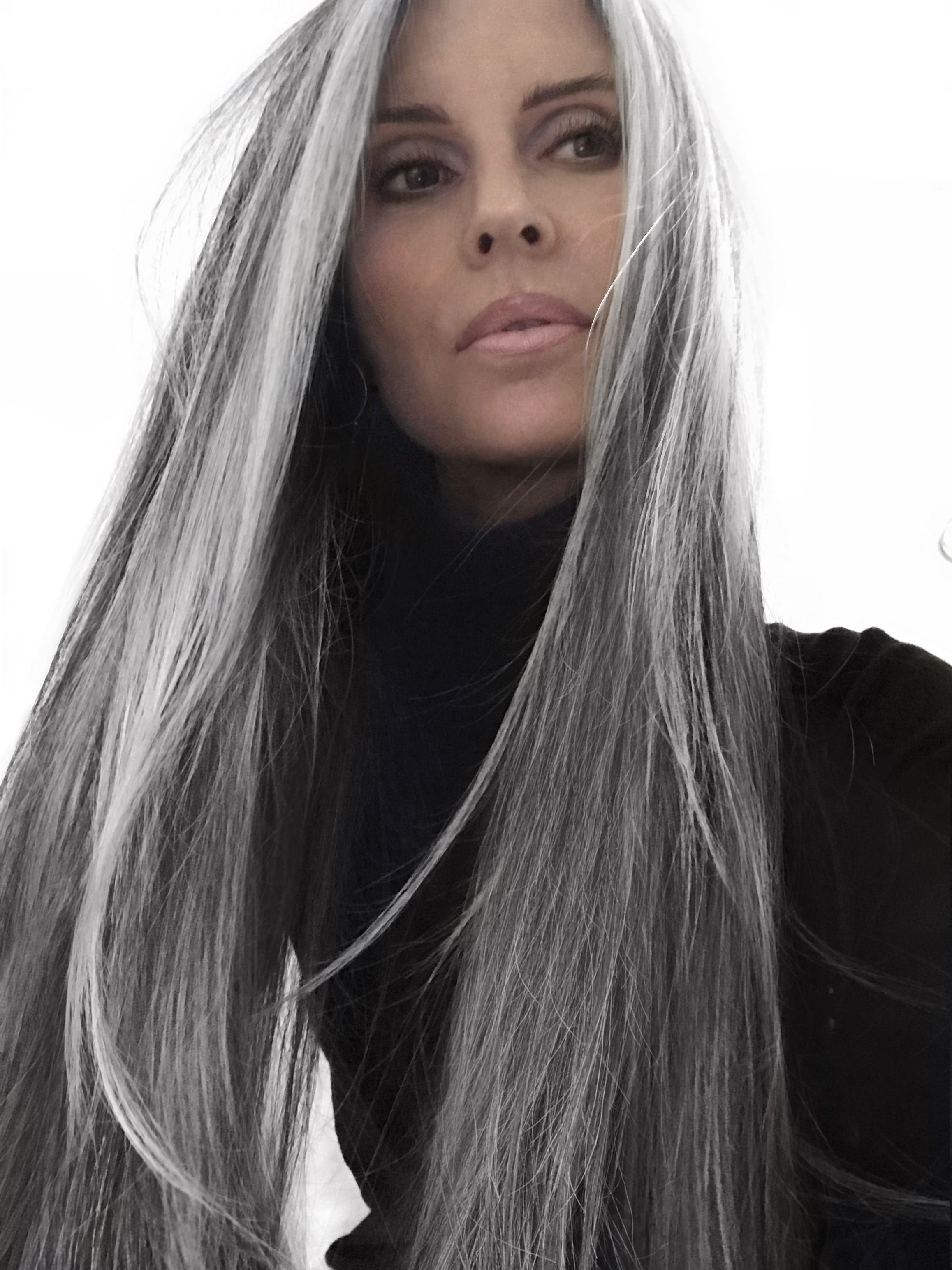 Мишель Олвера с серыми волосами