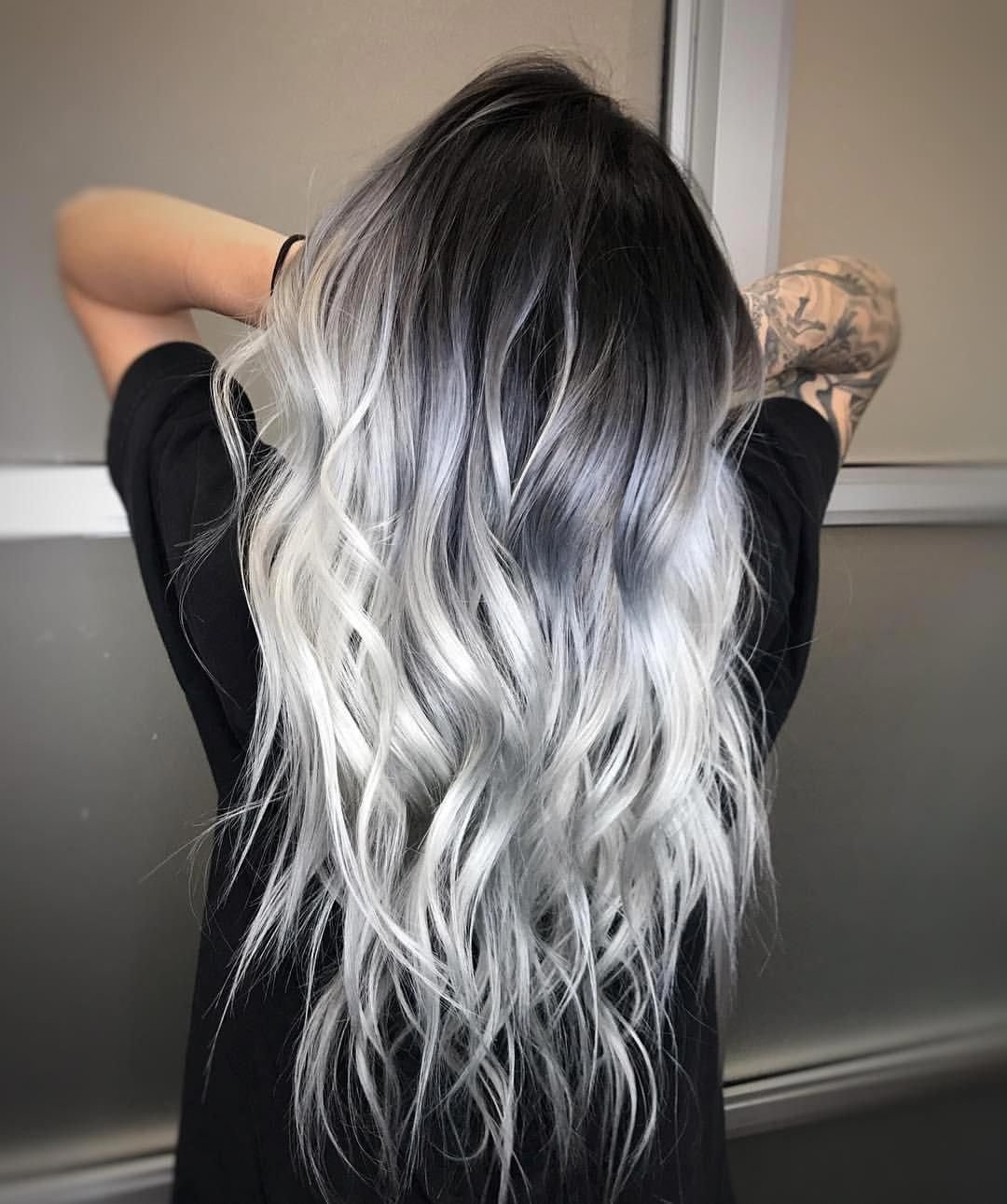 Пепельные волосы с черными корнями